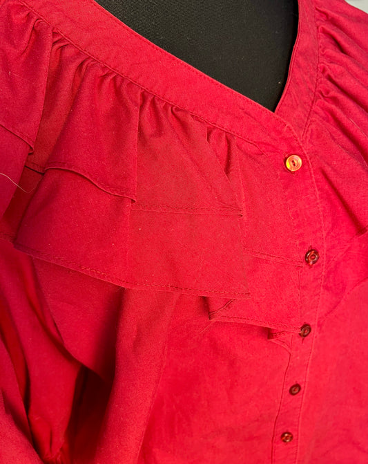 Vintage Malco Modes Bluse Weinrot Rüschen Gr. 42 44 XL Dark Academia USA 90s y2k