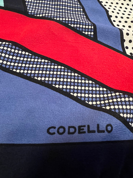 Codello Vintage Seidentuch – Pop-Art / Comic-Stil, 47×47 cm, Weiß-Blau-Rot