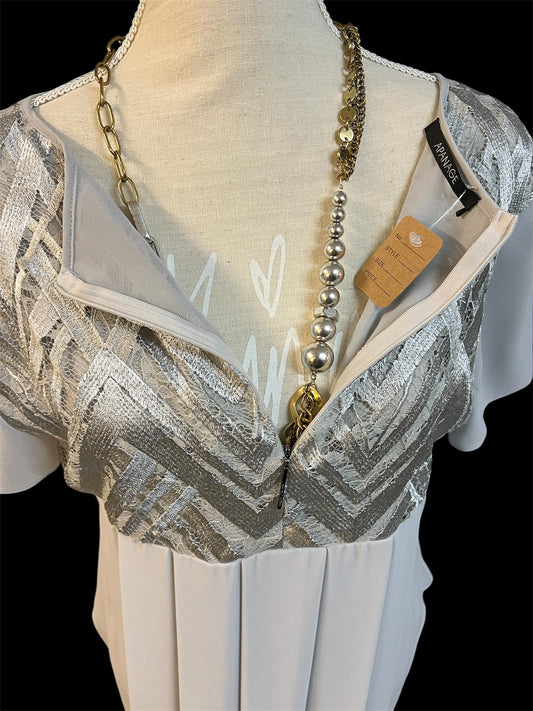 Vintage APANAGE Top Gr 42 silbergrau – Spitze & Chiffon – elegant Y2K