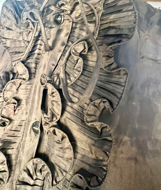 Vintage Rüschenbluse schwarz Gr. 36 38 Goth Romantic Satin Look Primavera