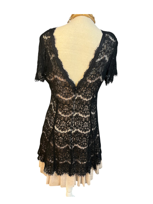 Betsy & Adam festliches Kleid Gr. 42 (US 14) – Spitze & Tüll – A-Linie – Schwarz/Nude – Abendkleid Cocktailkleid