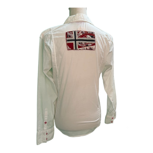 Vintage Napapijri Bluse 34/36 Weiß mit bunten gestickten Verzierungen