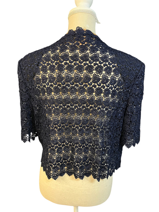 Vintage Spitzen Bolero dunkelblau – 90s Y2K Lace Jäckchen – Italien – Gr. 38/40