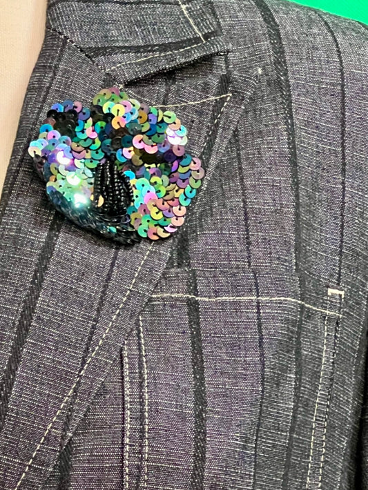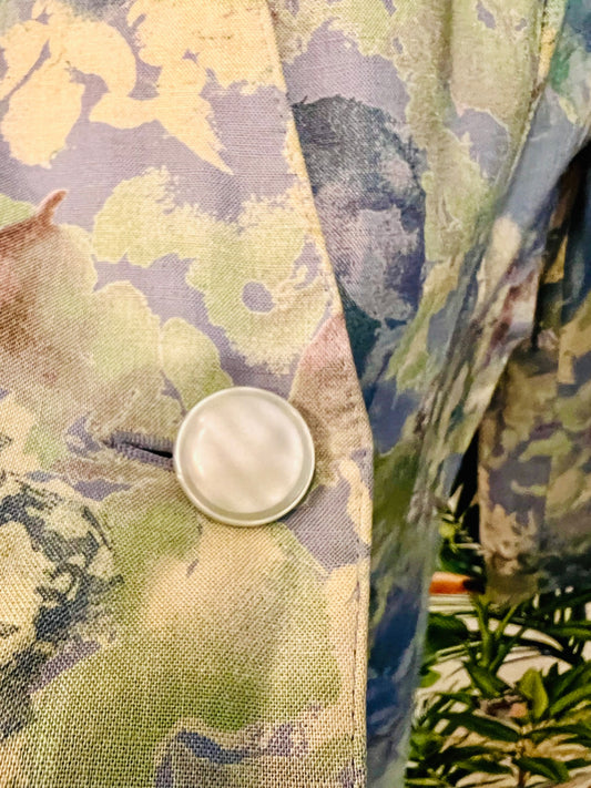 Vintage Blazer 40 Mehrfarbig grün blau Viskose Leinen