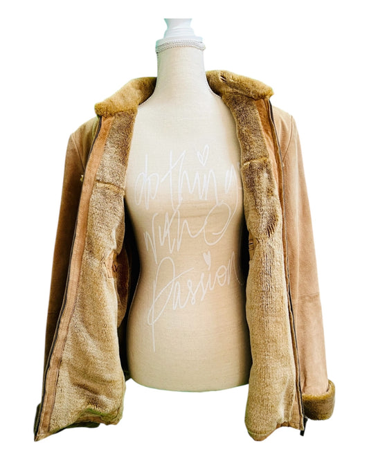 Vintage TCM Kunstfell Wildleder Jacke 38 / 40 Beige