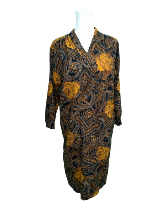 Vintage Olmar Kleid Ca. 42/44 Braun mit gelbem Muster