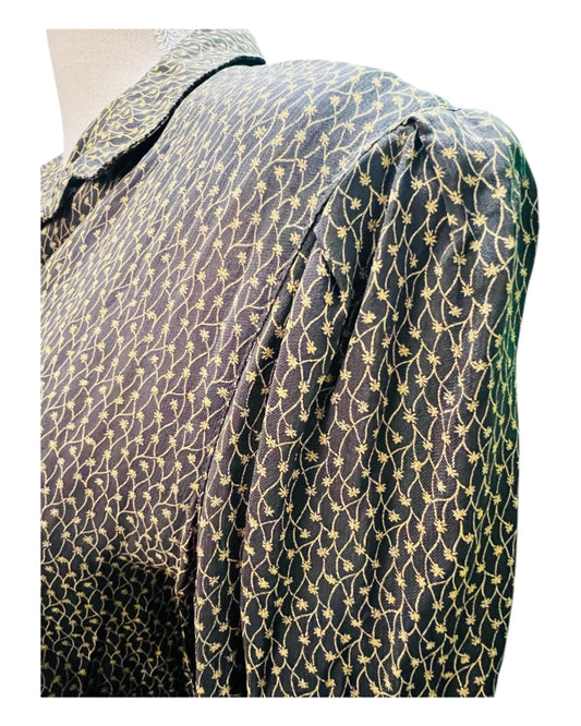 Vintage Viskose Kleid 38/40 Schwarz mit gelben Details