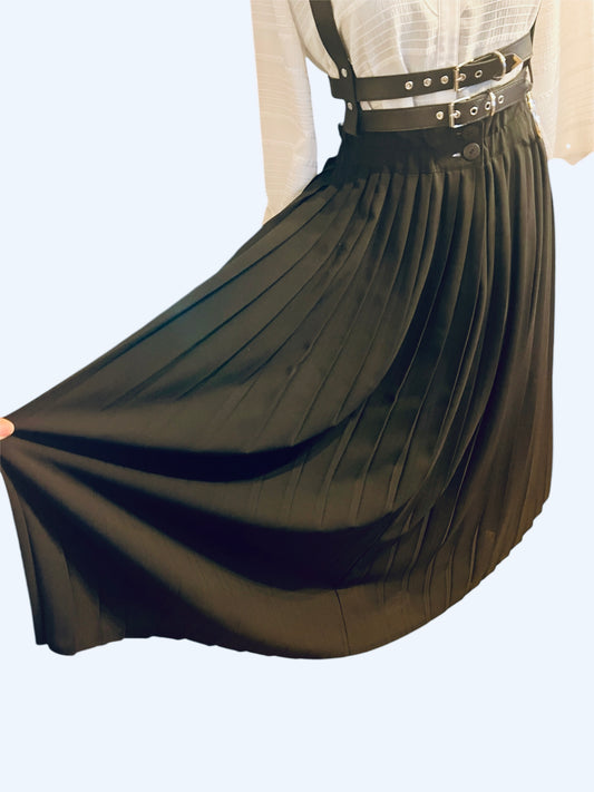 Vintage Rock 80s/90s – Schwarzer Faltenrock mit Stretch – Größe 38 40 M Rock lang schwarz