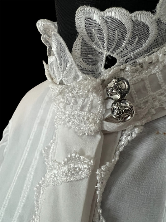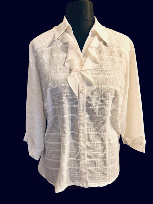 Vintage Bluse Sommermann – Gr. 40 M – Weiß mit Volants & Strukturstoff – Dark Fashion
