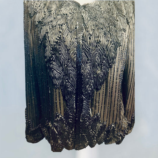 Vintage Seiden Bolero 40 Augustat GmbH India Schwarz Glanz