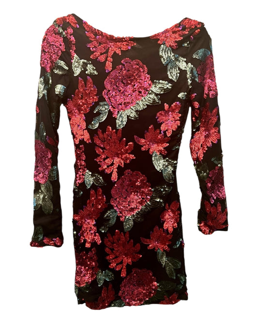 Vintage Kleid XS 34 Schwarz, Rot, Grün Pailletten