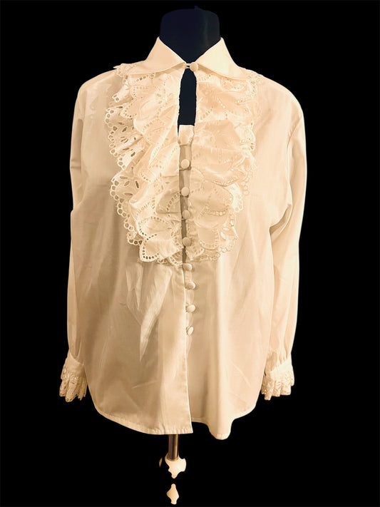 Vintage Bluse Weiß • Gr. 38- 42 • Spitze & Stoffknöpfe • 80er/90er • Gothic Dark
