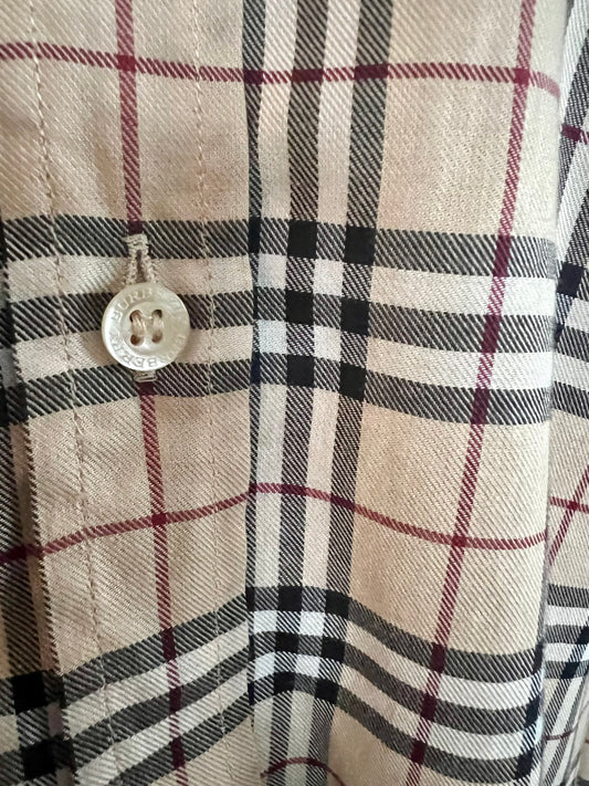 Vintage Burberry London Bluse Gr. 40 – Beige Kariert, Baumwolle, Top Zustand 90s 2000s