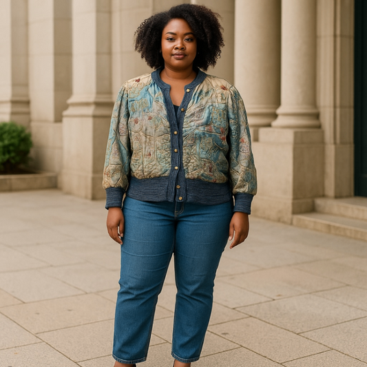 True Vintage Apfeld Jacke 44/46 Hellblau Bunt 80s