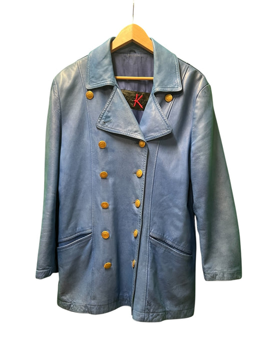 Vintage Catherine Khan Ledermantel 42 BlauSchwarz Trenchcoat