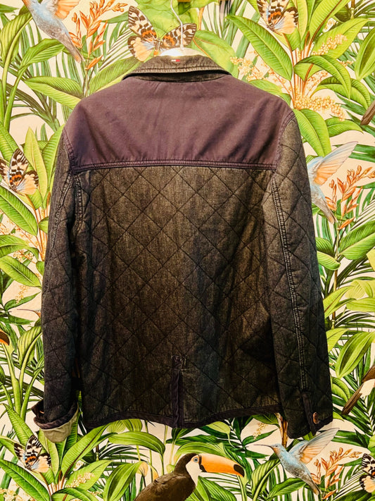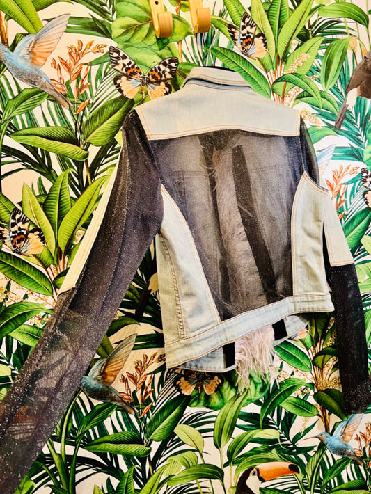 Designer AVIU Jeansjacke S Hellblau + Schwarz m. Echtfedern