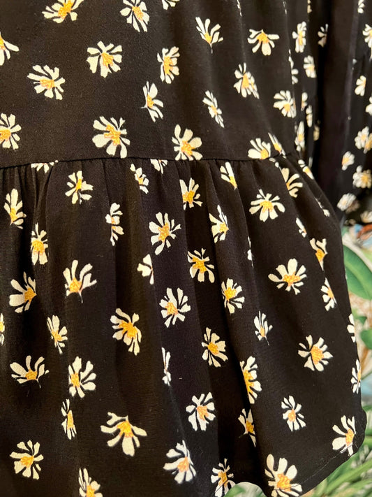 Oui Midi Rock S / M Schwarz mit Blumenmuster