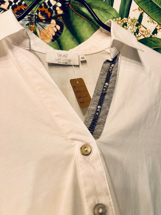 Just White Blusenshirt M Weiß mit Glitzersteinen