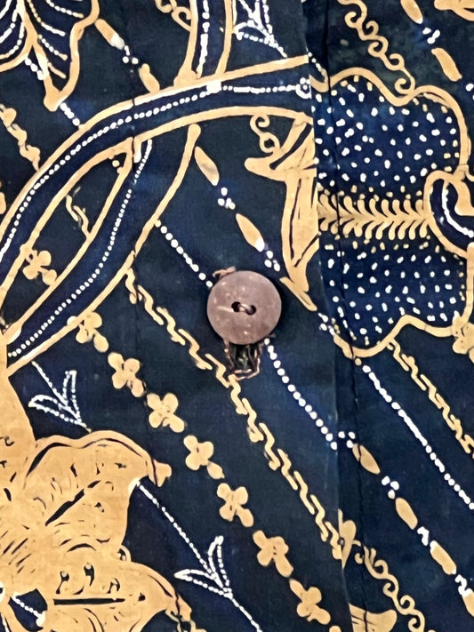 Vintage Top 38/40 Schwarzblau mit Muster in Ocker und weiß