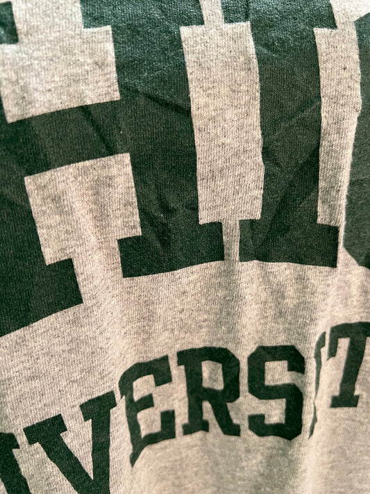 Vintage Gildan Heavy Cotton T-Shirt L (42/44) Grau mit grünem Druck