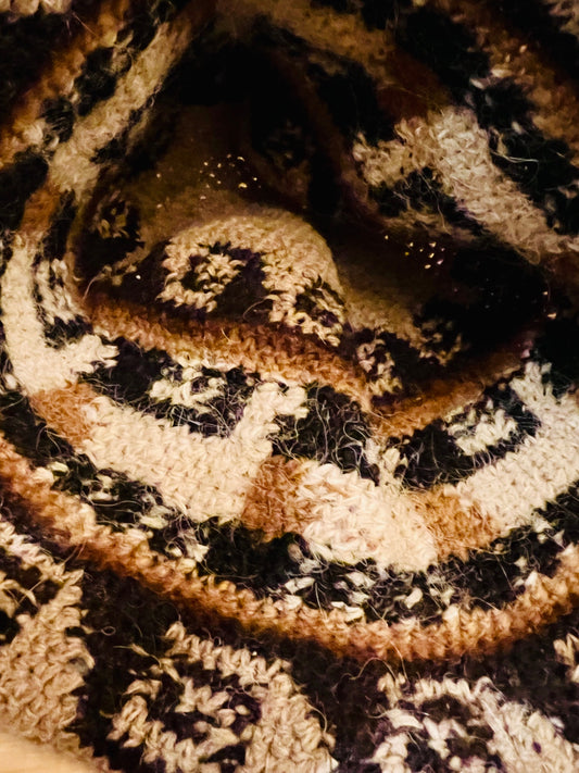 Vintage Handmade Mütze gehäkelt Braun Beige Alpaka
