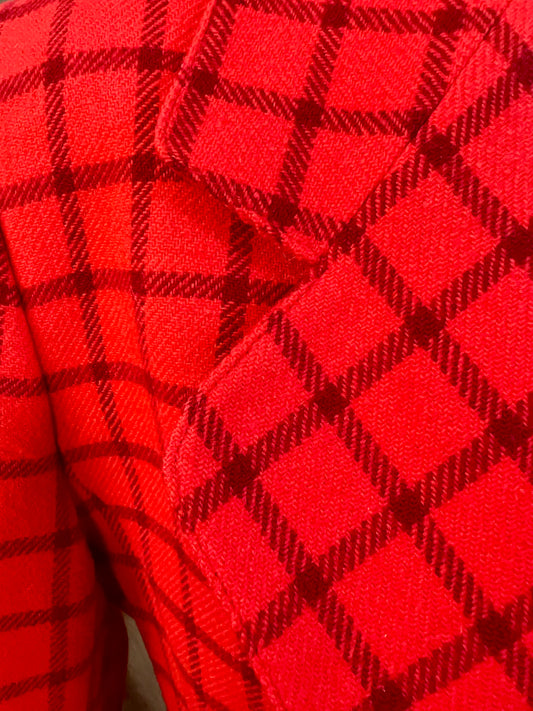 Vintage Guy Laroche Blazer – Rot kariert, Gold-Knöpfe, Gr. 38/40, Wool Statement Piece