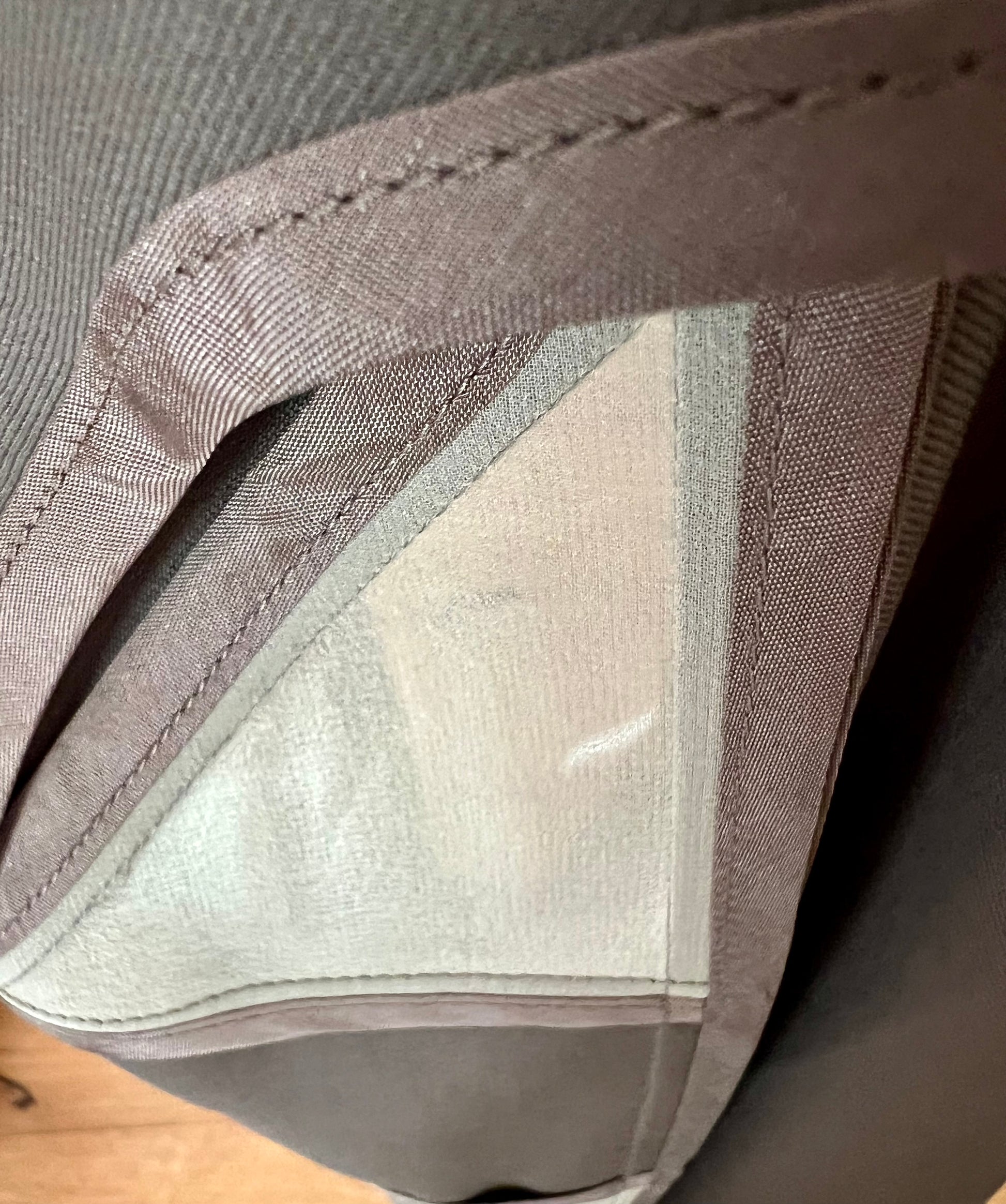 - Farbe: Taupe mit cremefarbenen, leicht transparenten Einsätzen