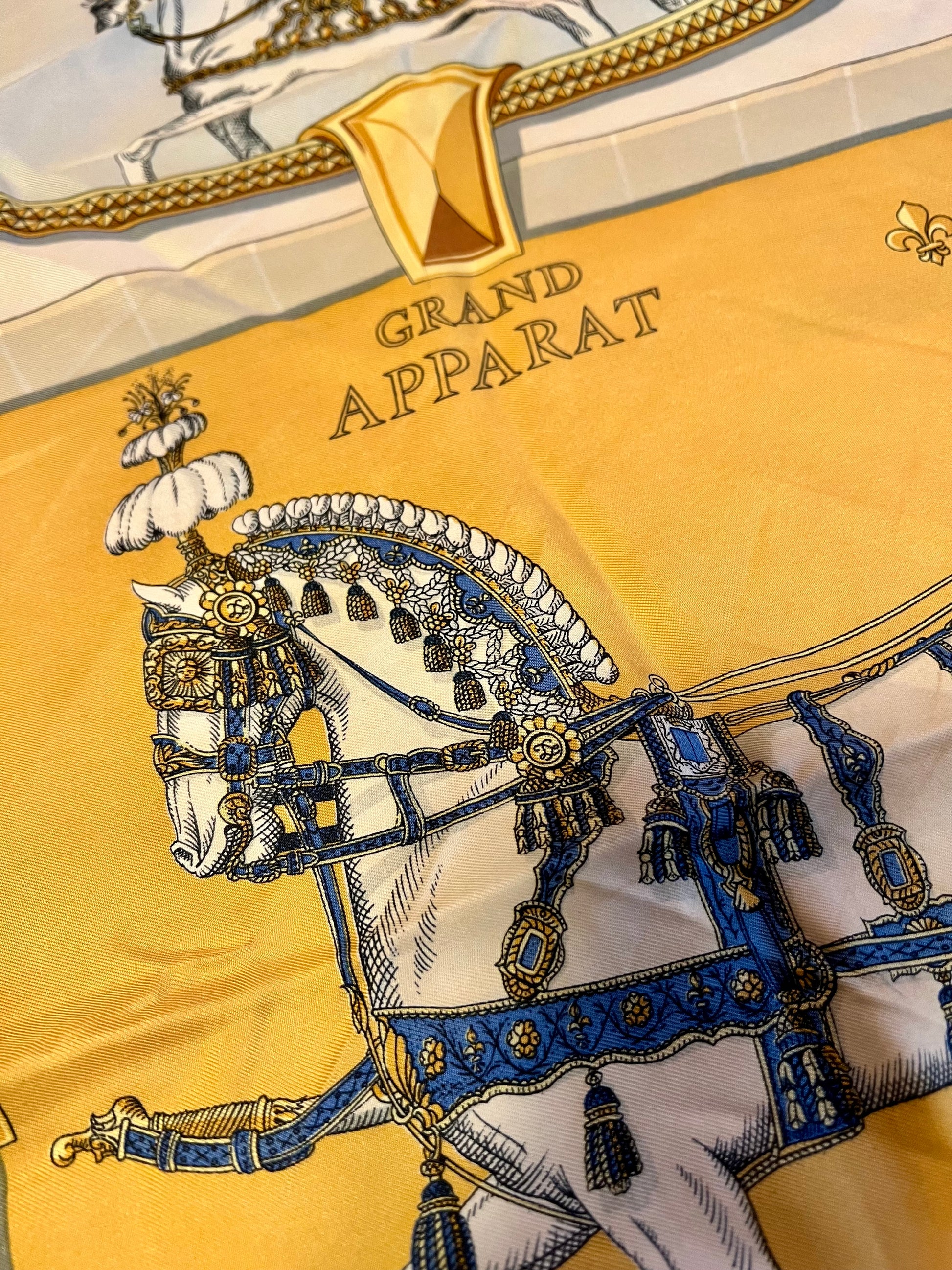 💡 Zur Datierung: Hermès-Carrés mit „Grand Apparat“ sind klassische Vintage-Designs, die vor allem 1980er bis 1990er Jahre produziert wurden und heute auf dem Second-Hand-Markt stark gesucht sind.🔥