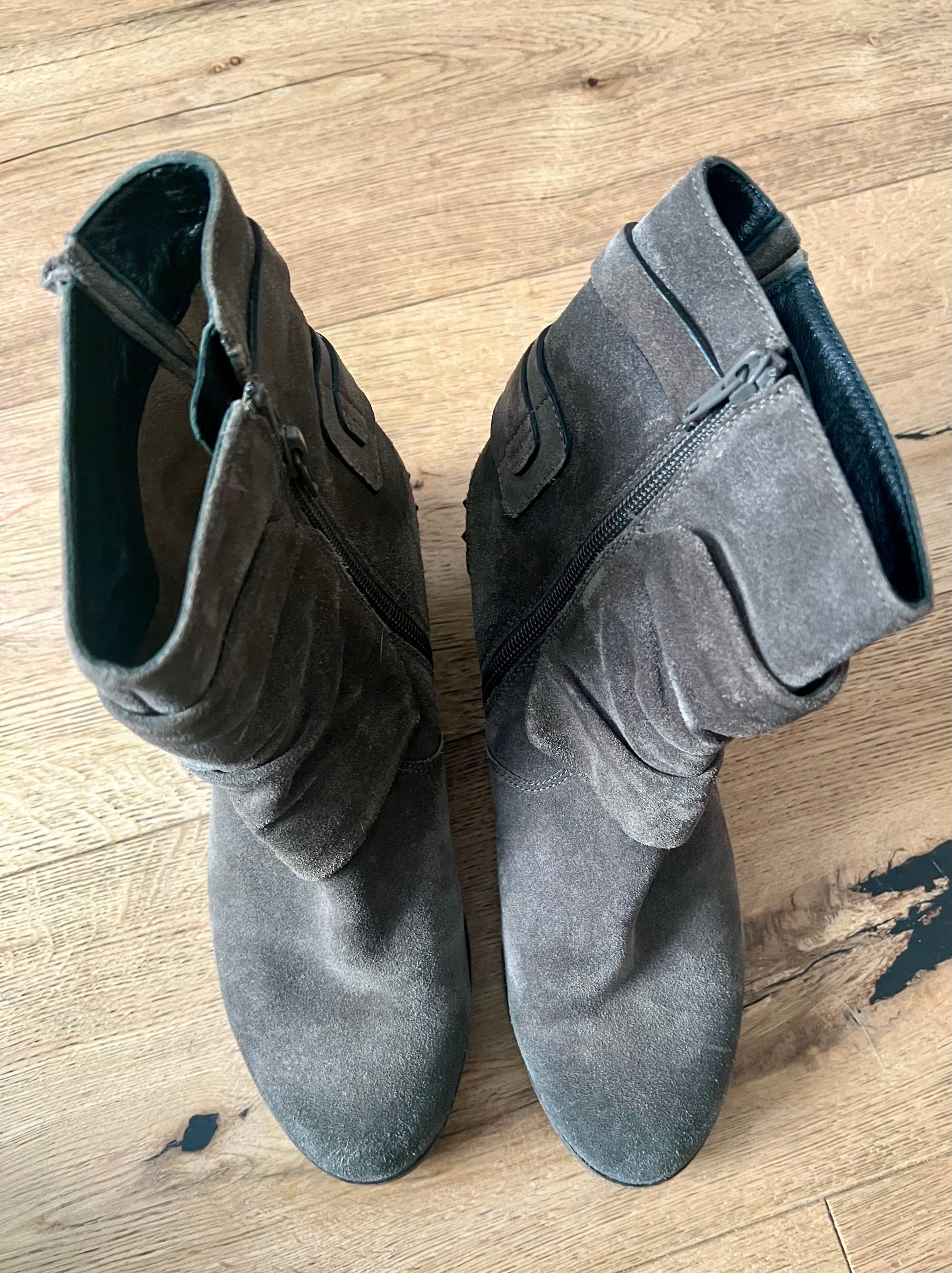 Kennel & Schmenger Boots Wildleder grau braun Nieten Schnallen Gr. 38 (UK 4) Stiefel Biker