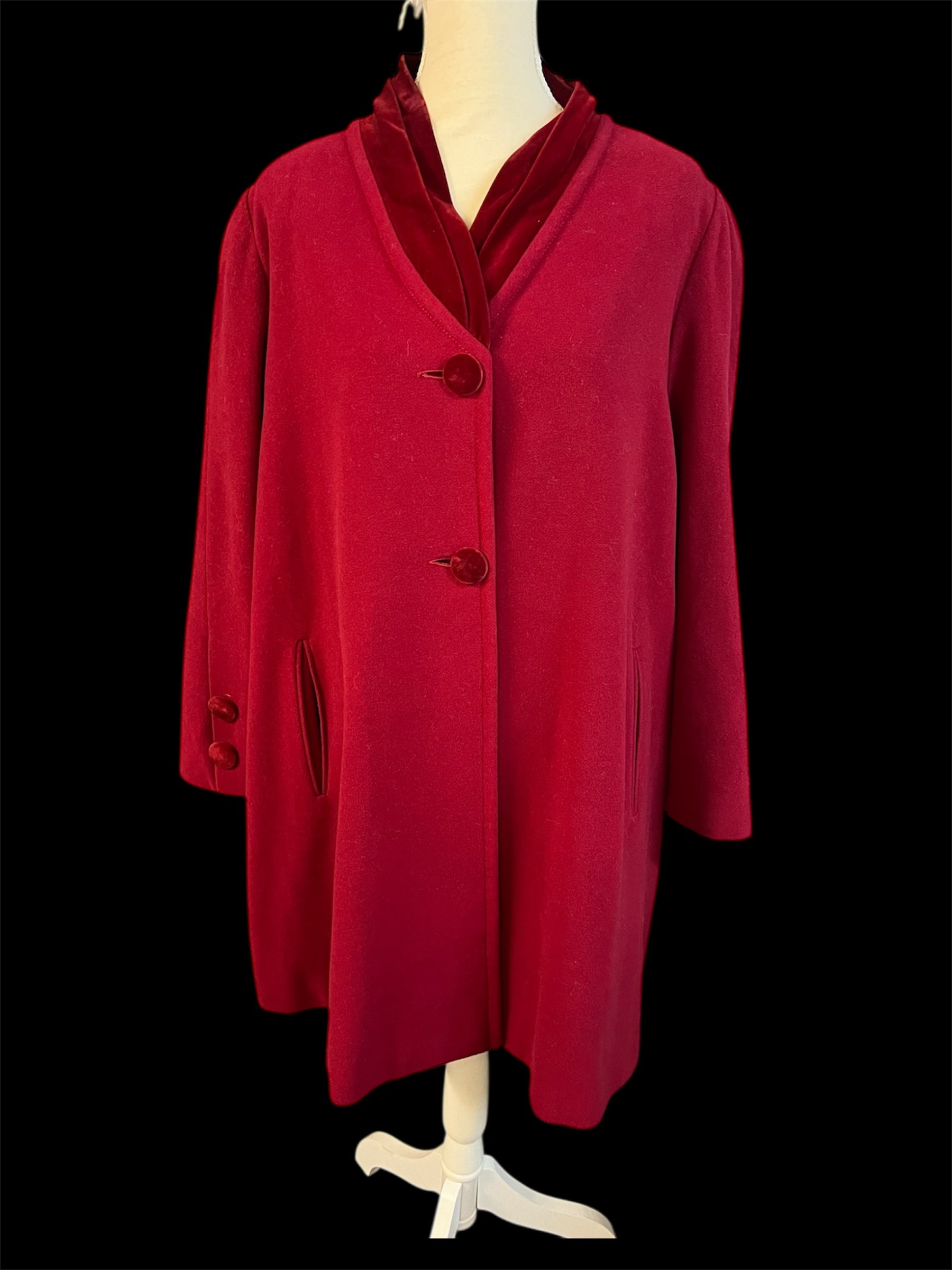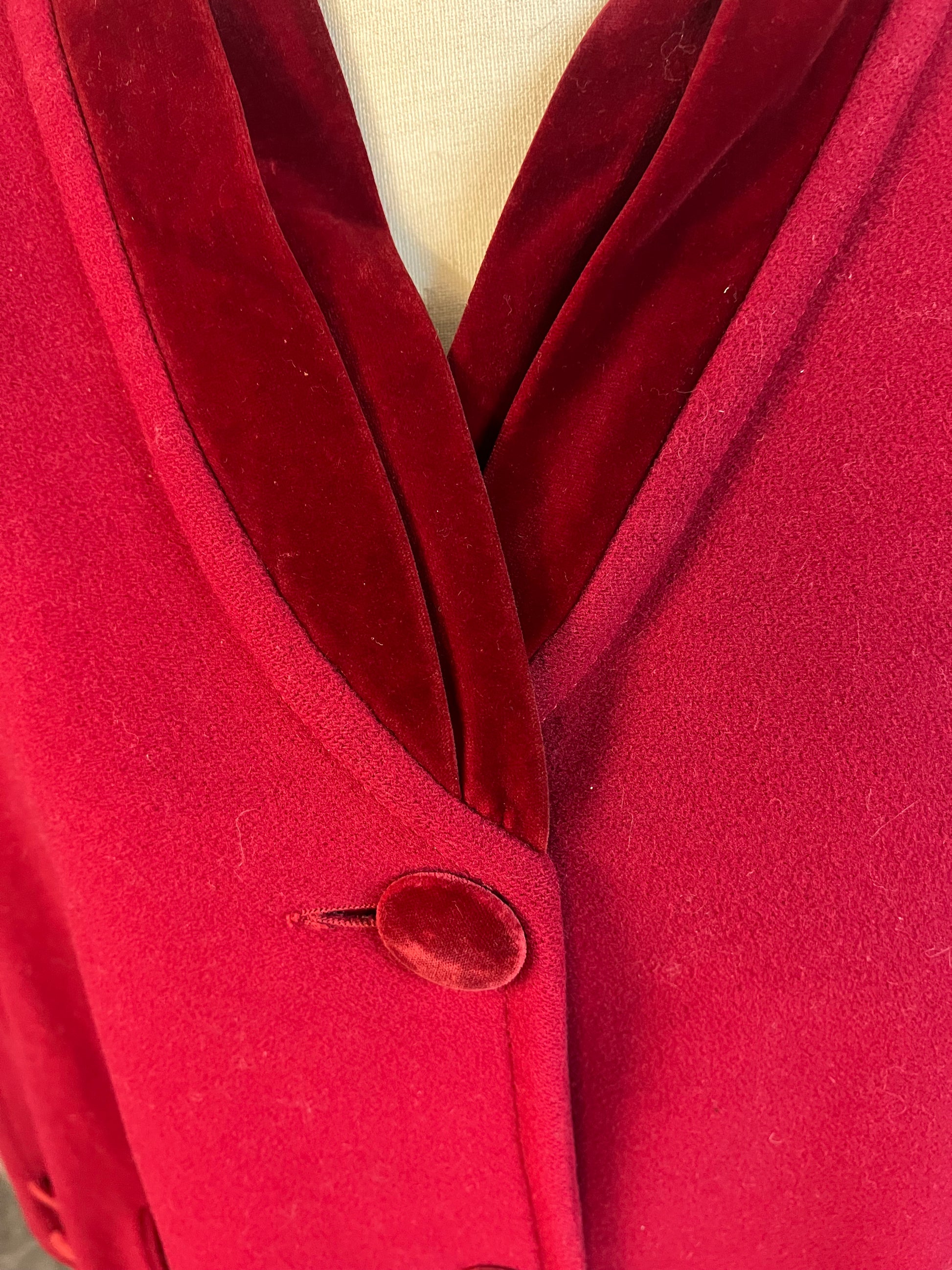 Material: Wolle & Kaschmir – weich, warm und edel Samt-Details am Kragen und den Knöpfen