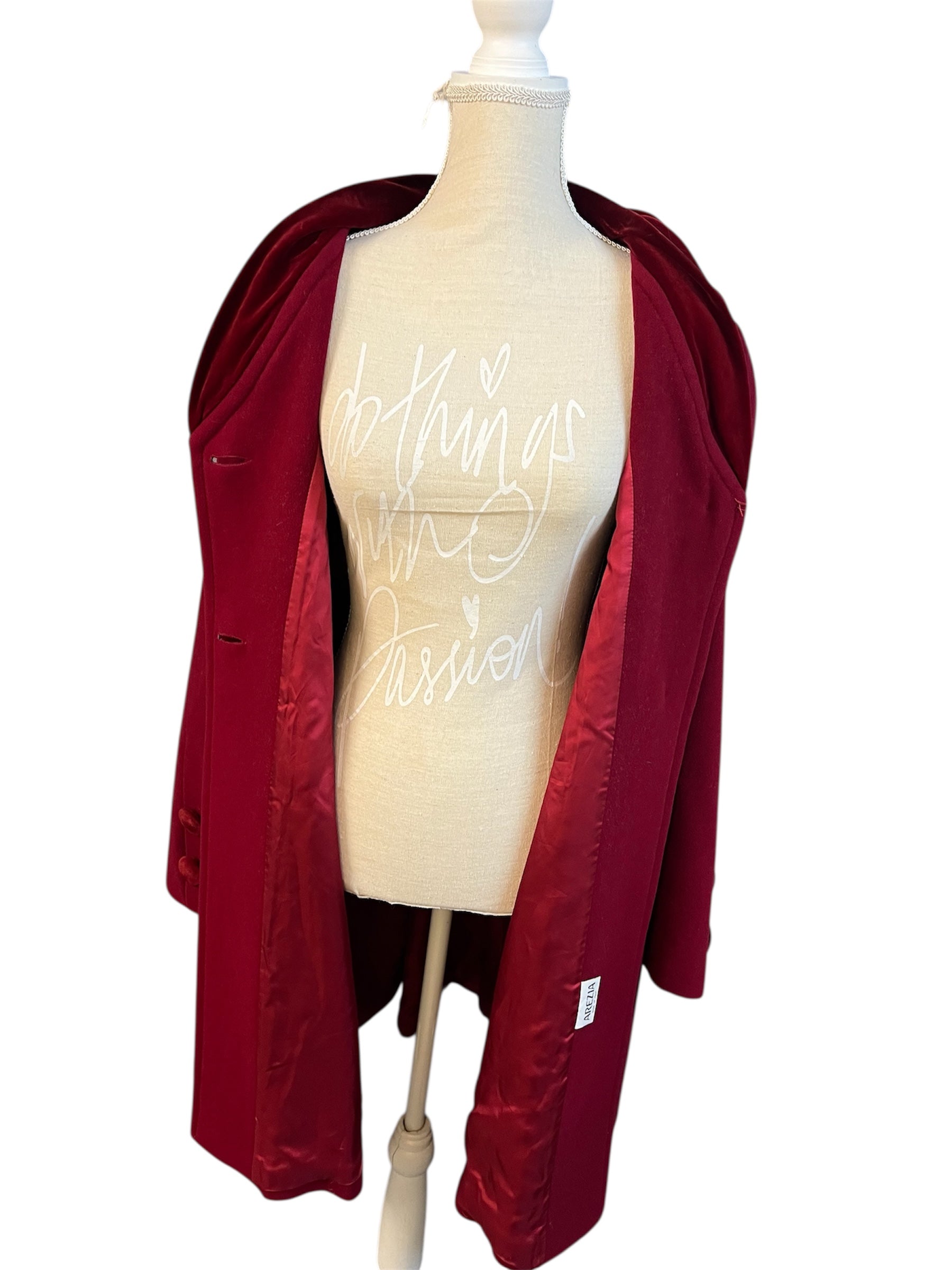 Verkaufe einen hochwertigen Vintage-Mantel von Arezia, made in Italy, in weinrot und Größe Ital. 48 (ca. deutsche 44).
