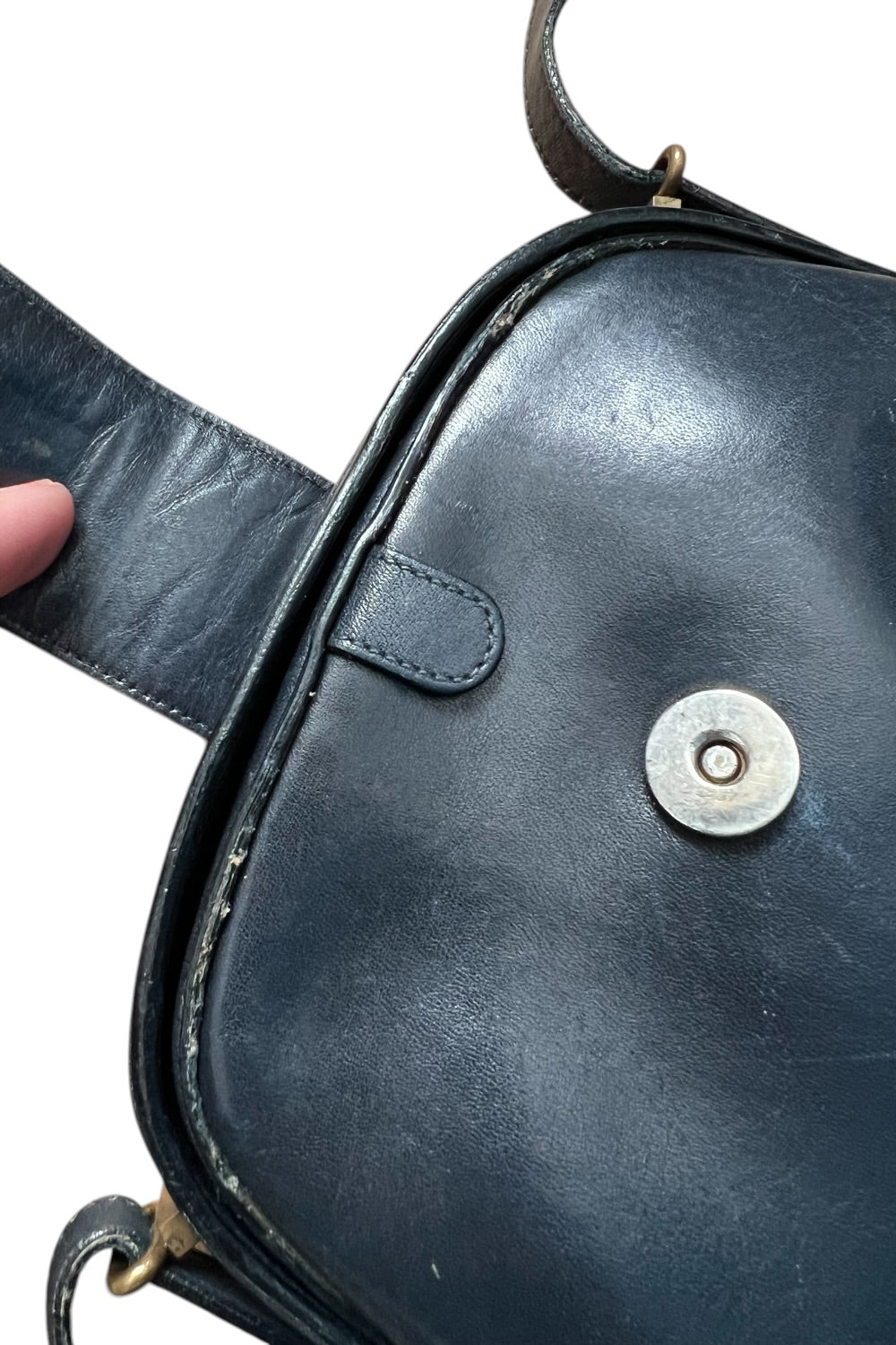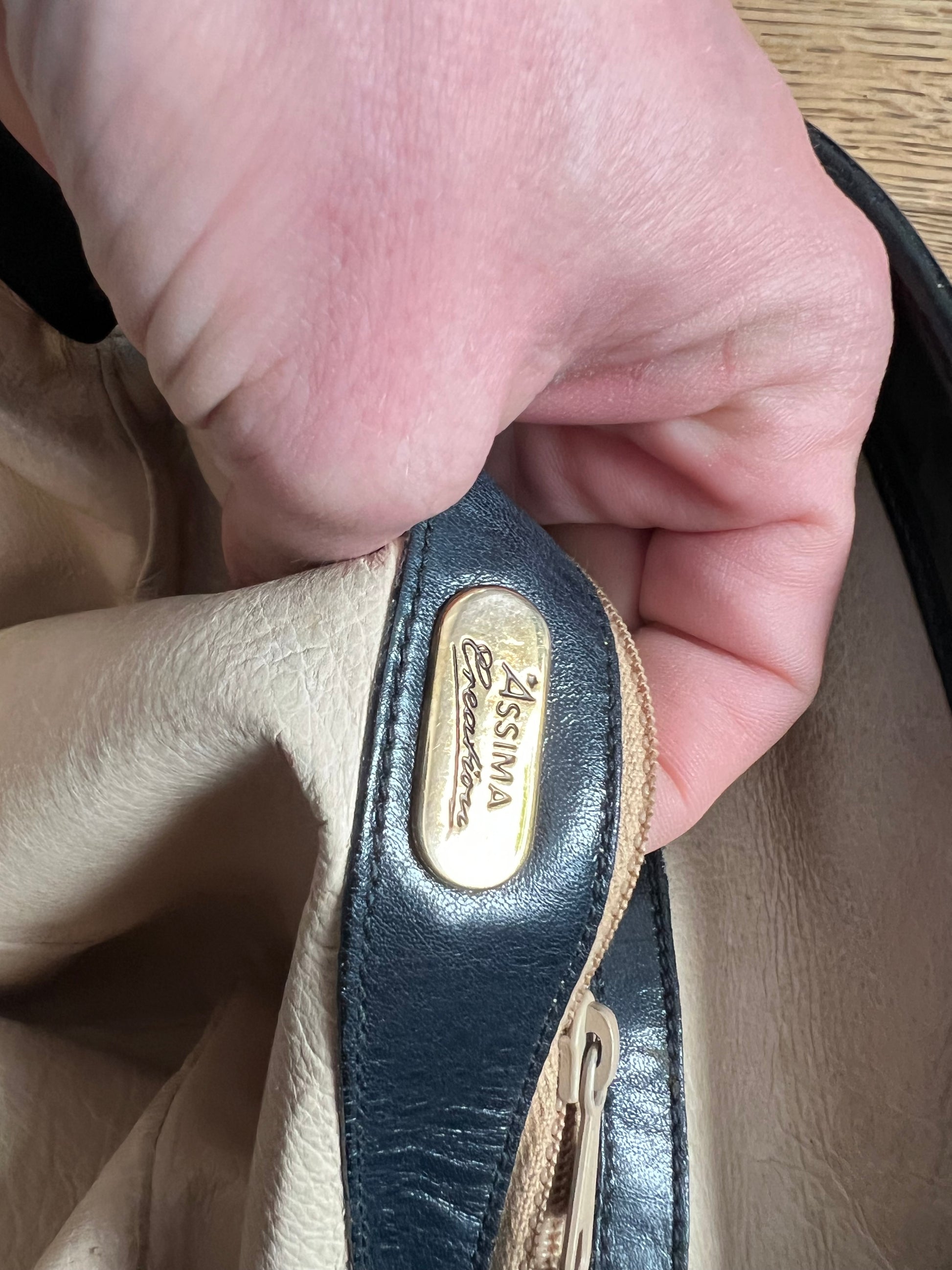 Charmante Vintage-Ledertasche von Assima Creation in edlem Dunkelblau – ein echtes Retro-Piece mit Charakter und zeitlosem Appeal.