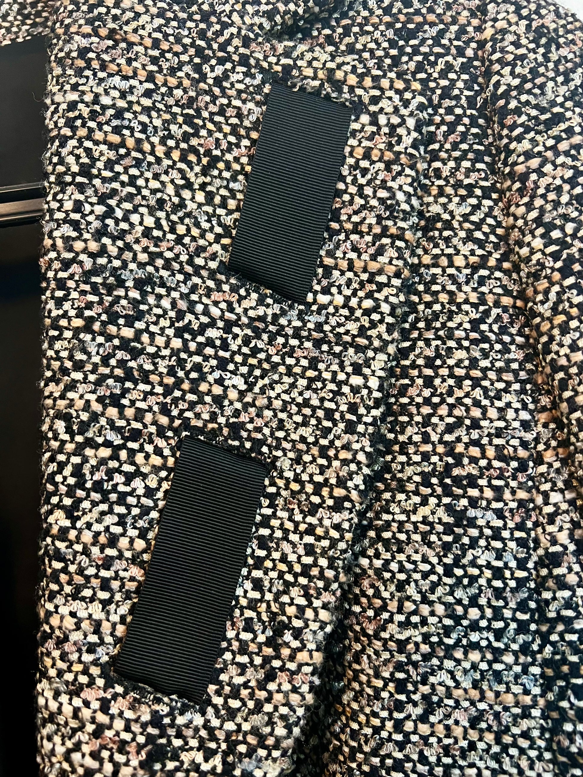 🔸 Details: – Schwarzes Zierband am Ausschnitt – Mit einem Knopf zu schließen – Leicht verstärkte Schulterpartie (keine dicken Polster) – Edles schwarzes Innenfutter mit Escada Logo