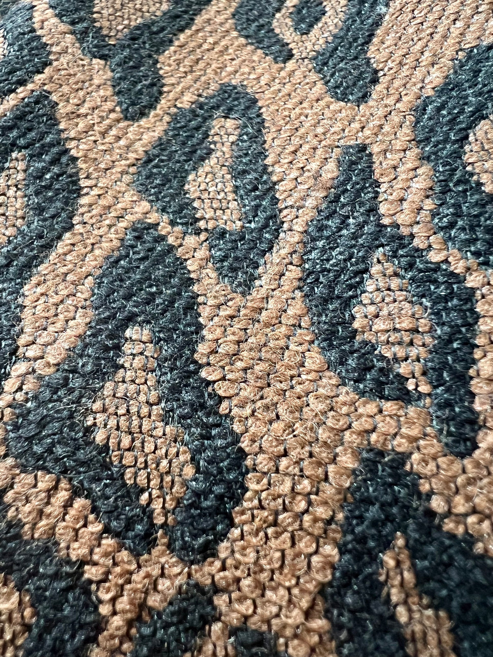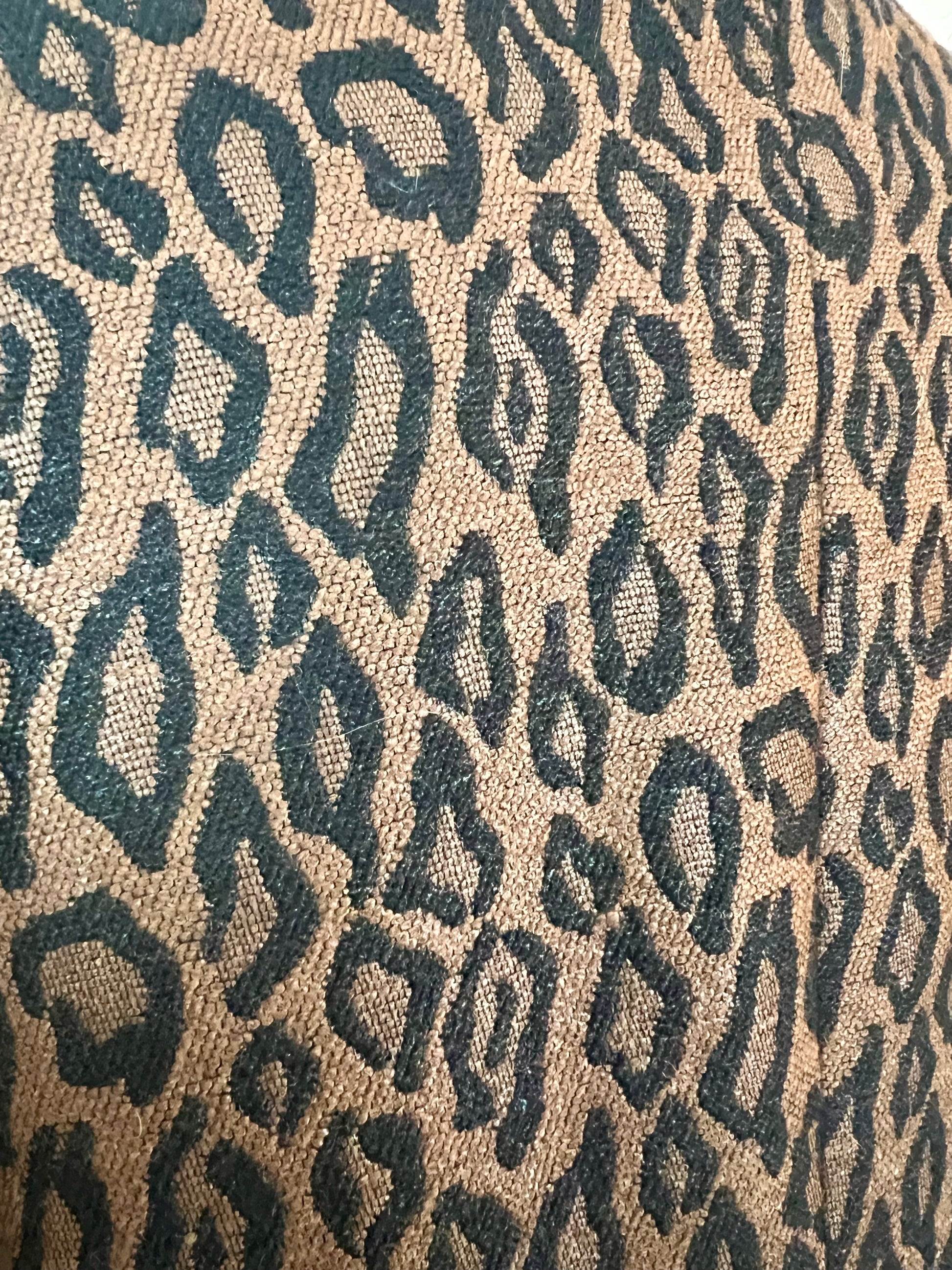 Außenmaterial aus einem hochwertigen braunen Webstoff mit schwarzem Leo-Muster – eleganter Animal-Print trifft auf edle Verarbeitung.