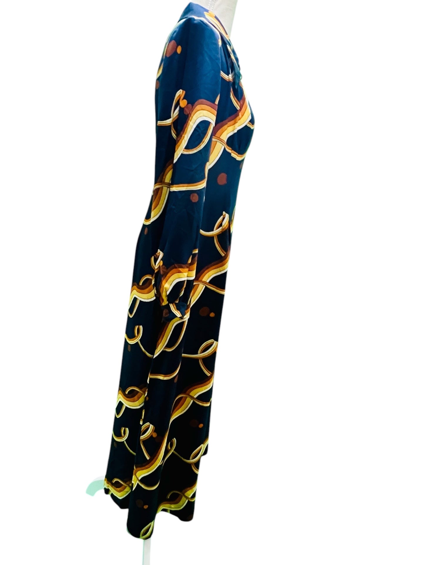 Handmade True Vintage 70s 70er Kleid 38 Blau mit Muster orange gelb