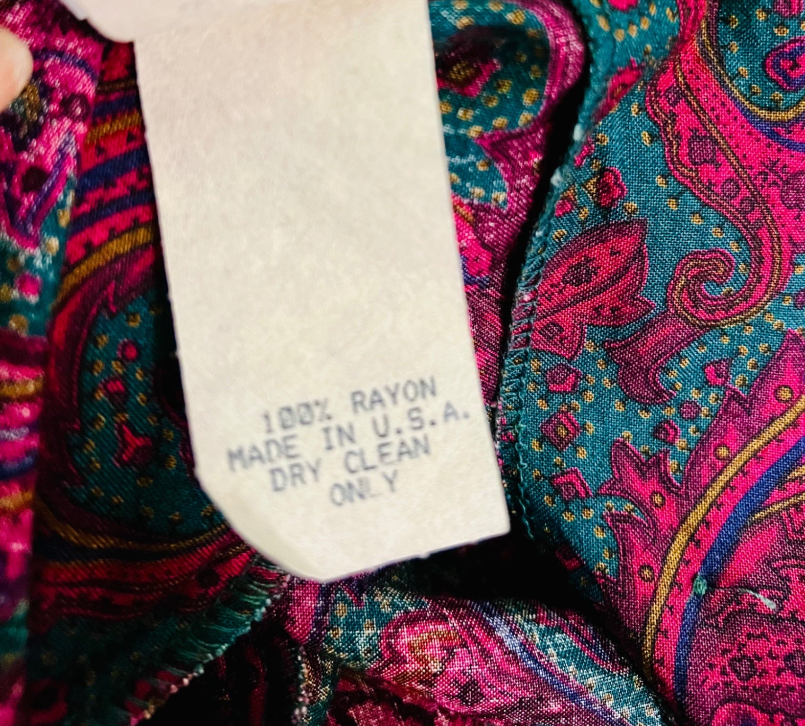 In diesem außergewöhnlichen Impromptu Vintage Kleid in Größe 36/38 kommst du garantiert groß raus! Die mehrfarbige Optik in tollen beeretönen macht es zu einem echten Hingucker und zaubert sofort gute Laune. 100 % Rayon (Kunstseide bzw. Viskose) verursachen ein gutes Gefühl auf deiner Haut.