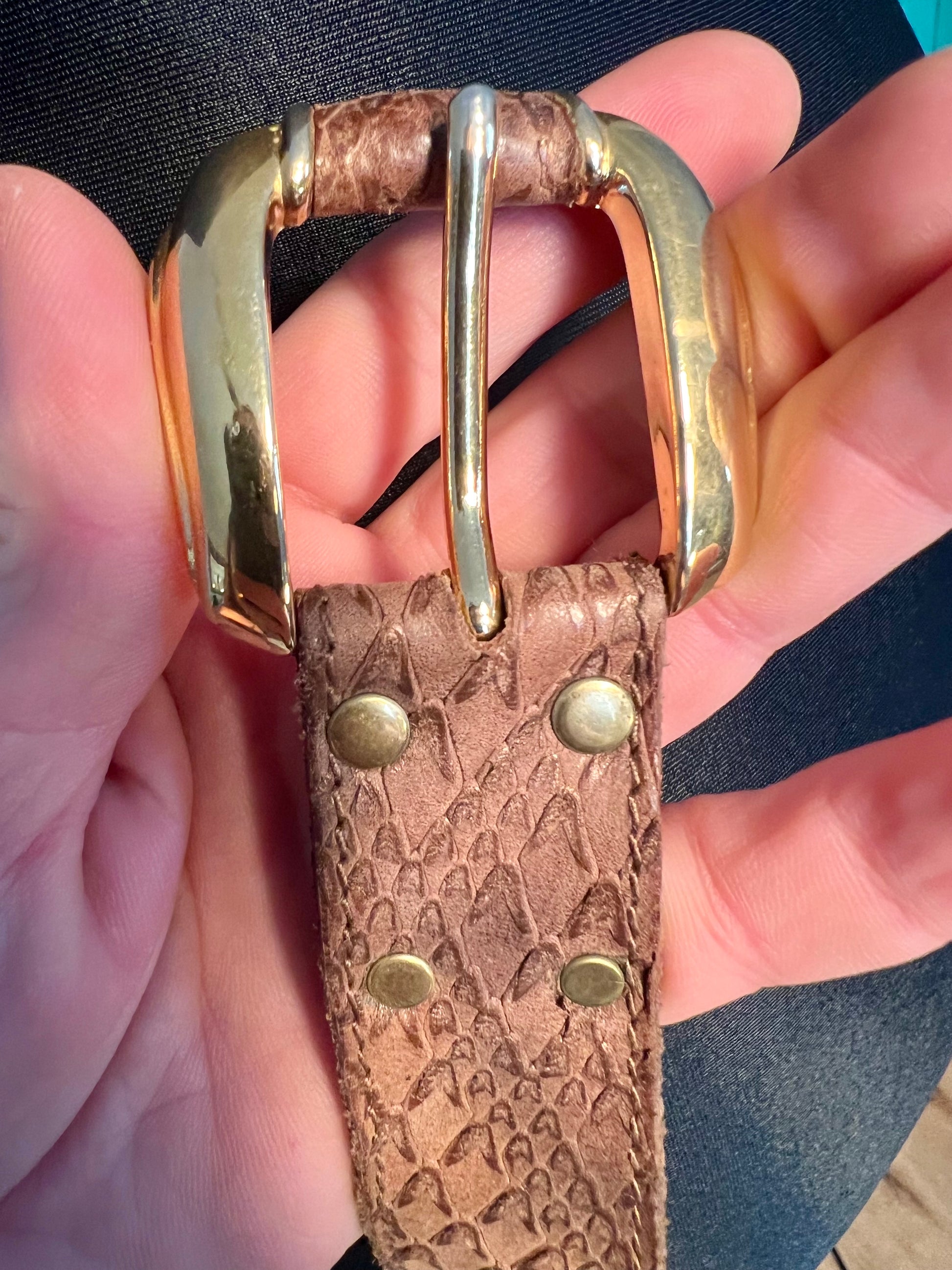 Vintage Gürtel braun | goldene Löwen-Metallschnalle | edles „n“-Detail | Statement-Piece | 80s/90s