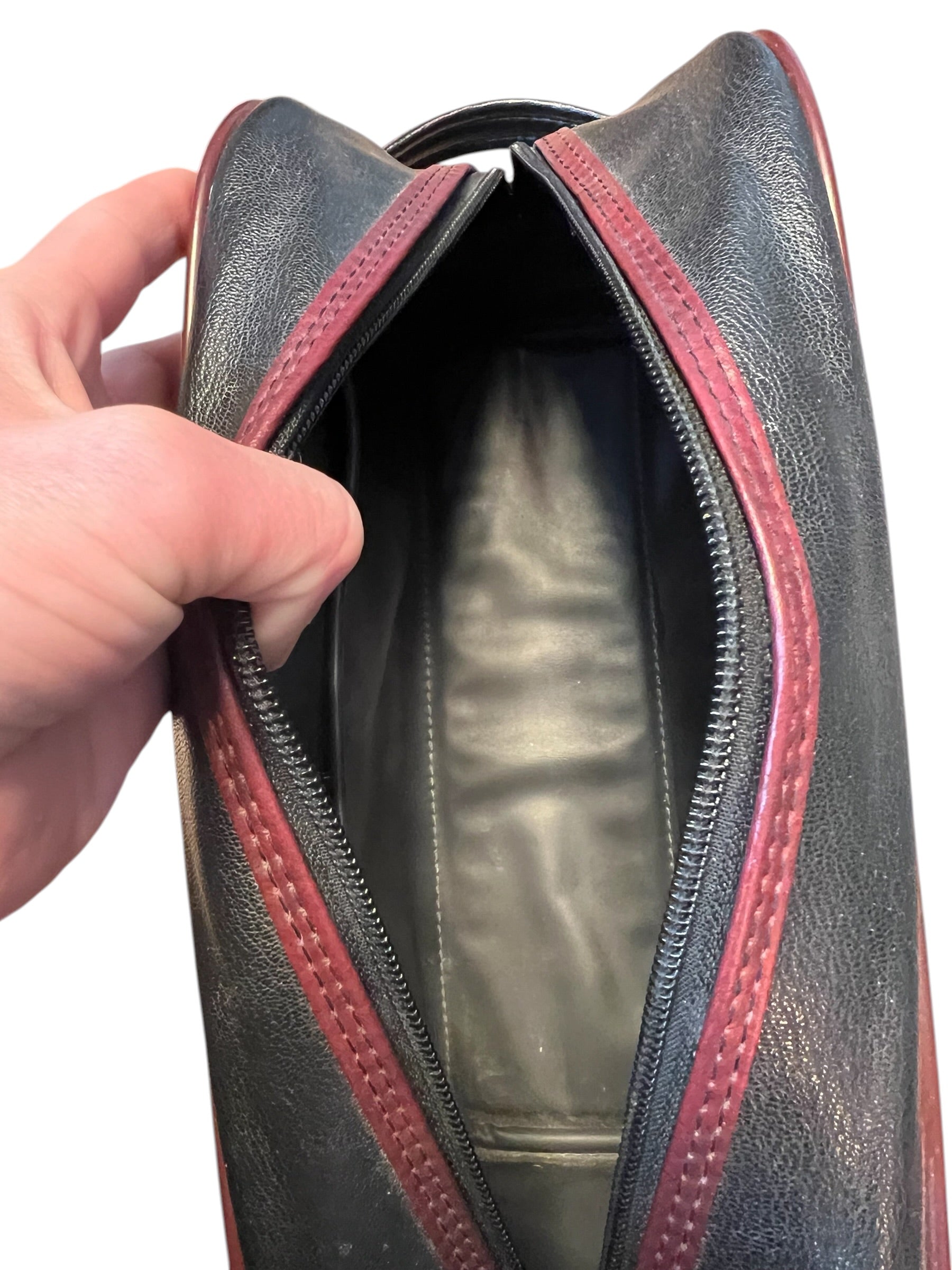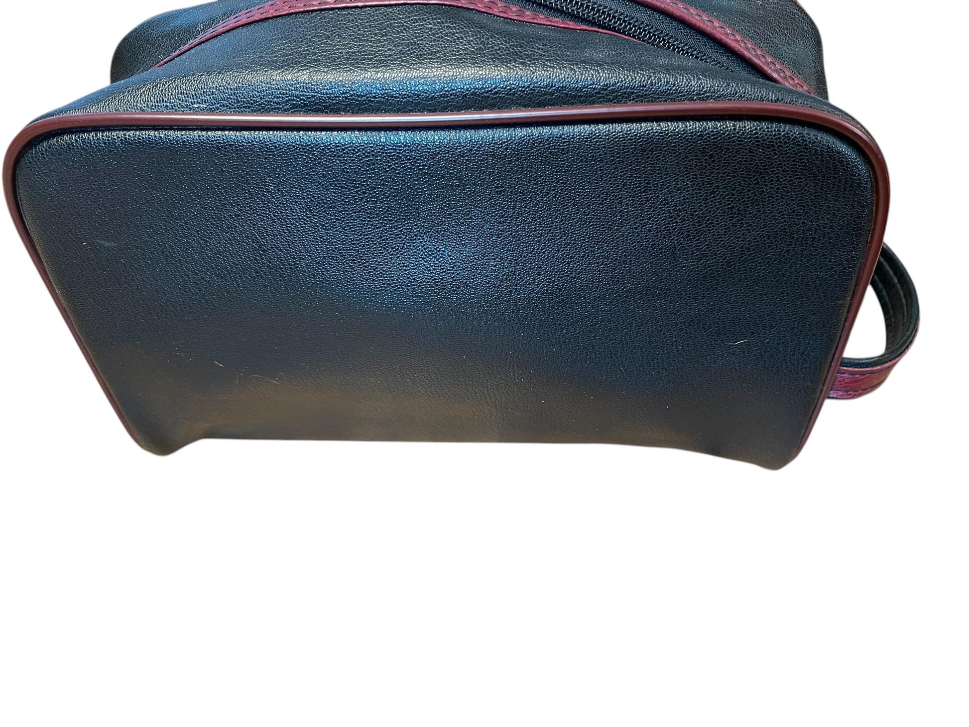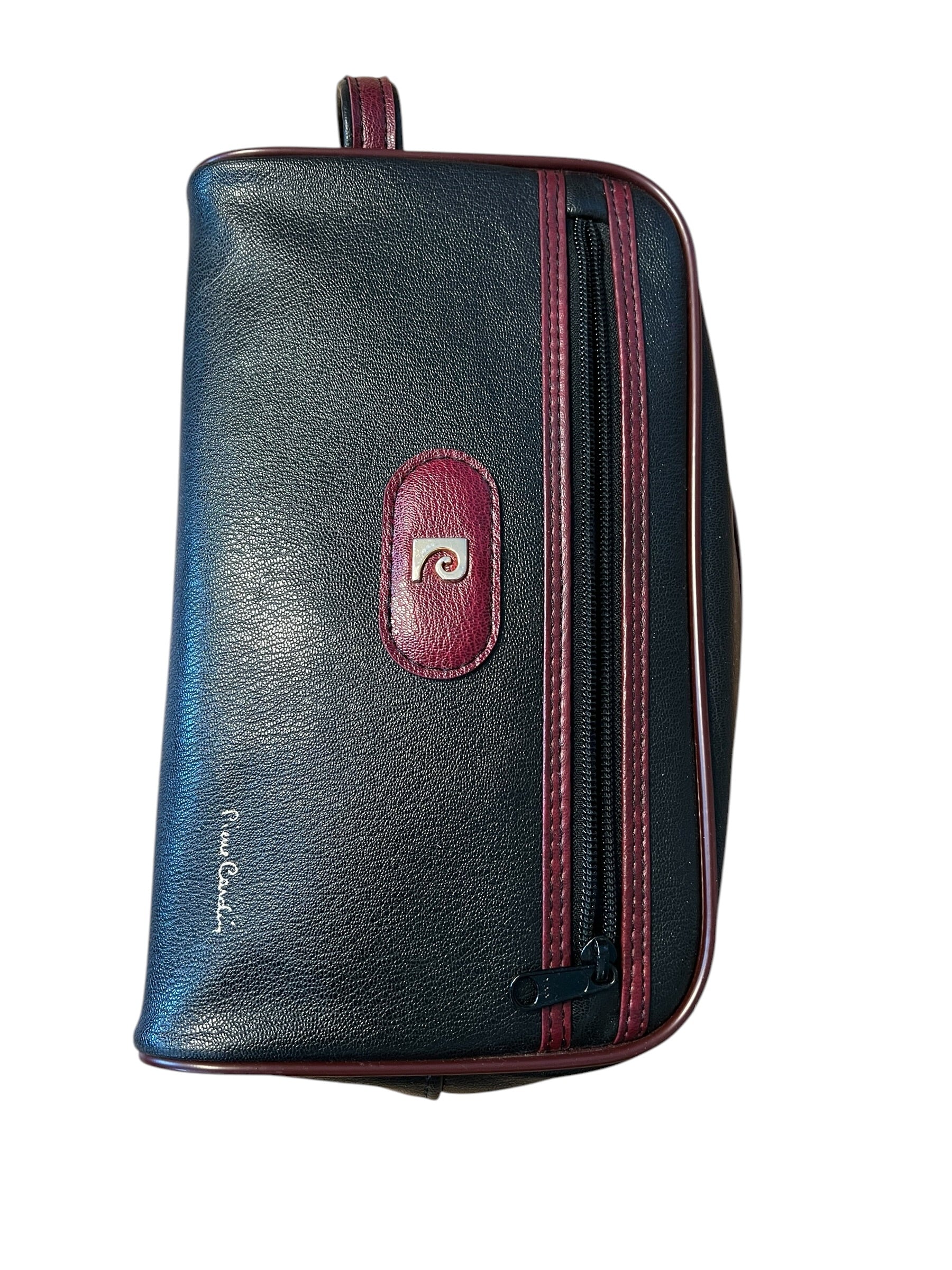 Vintage Pierre Cardin Kulturtasche Leder schwarz weinrot Herren Tasche Reise Kosmetik 80s 90s