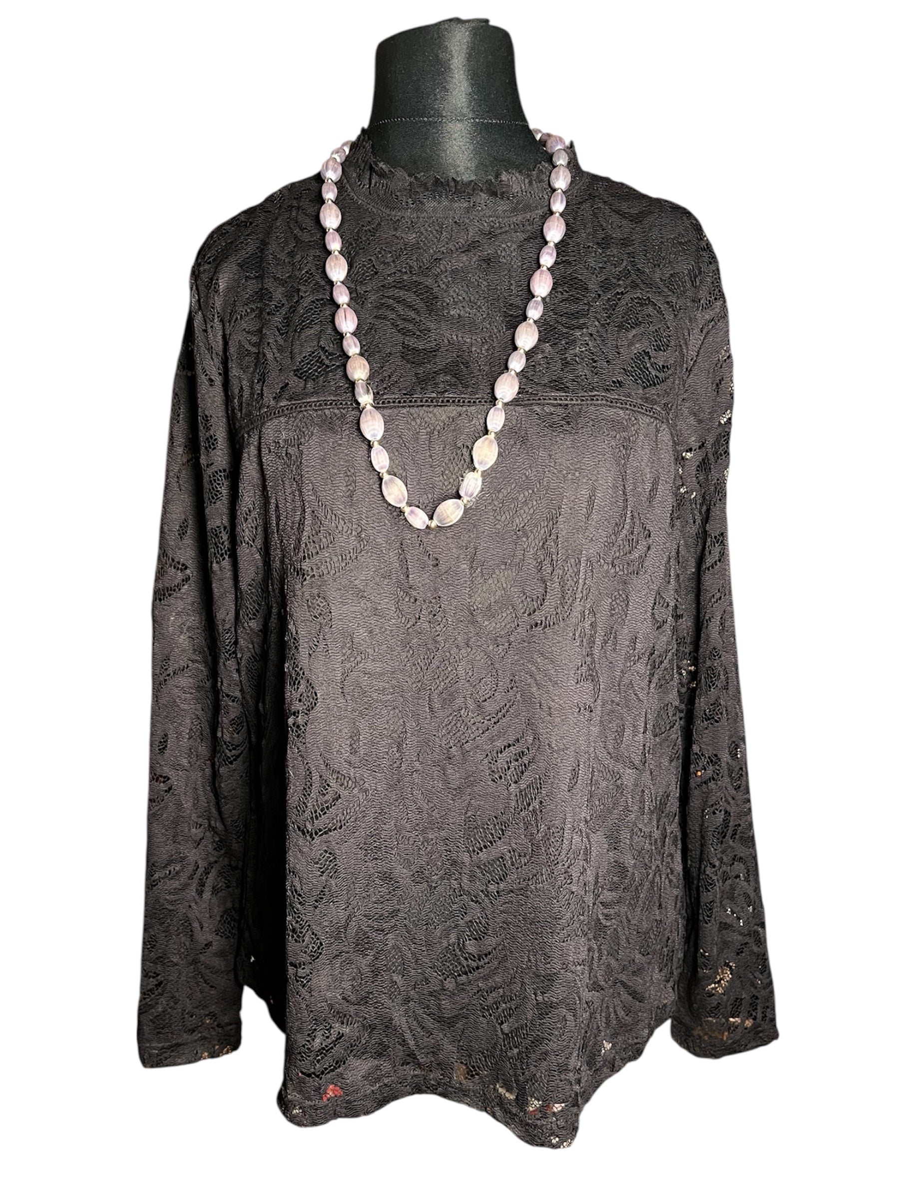 Elegantes Spitzentop / Langarmshirt in komplett Schwarz, perfekt für Y2K-Looks, Abend-Outfits oder moderne Layering-Styles.