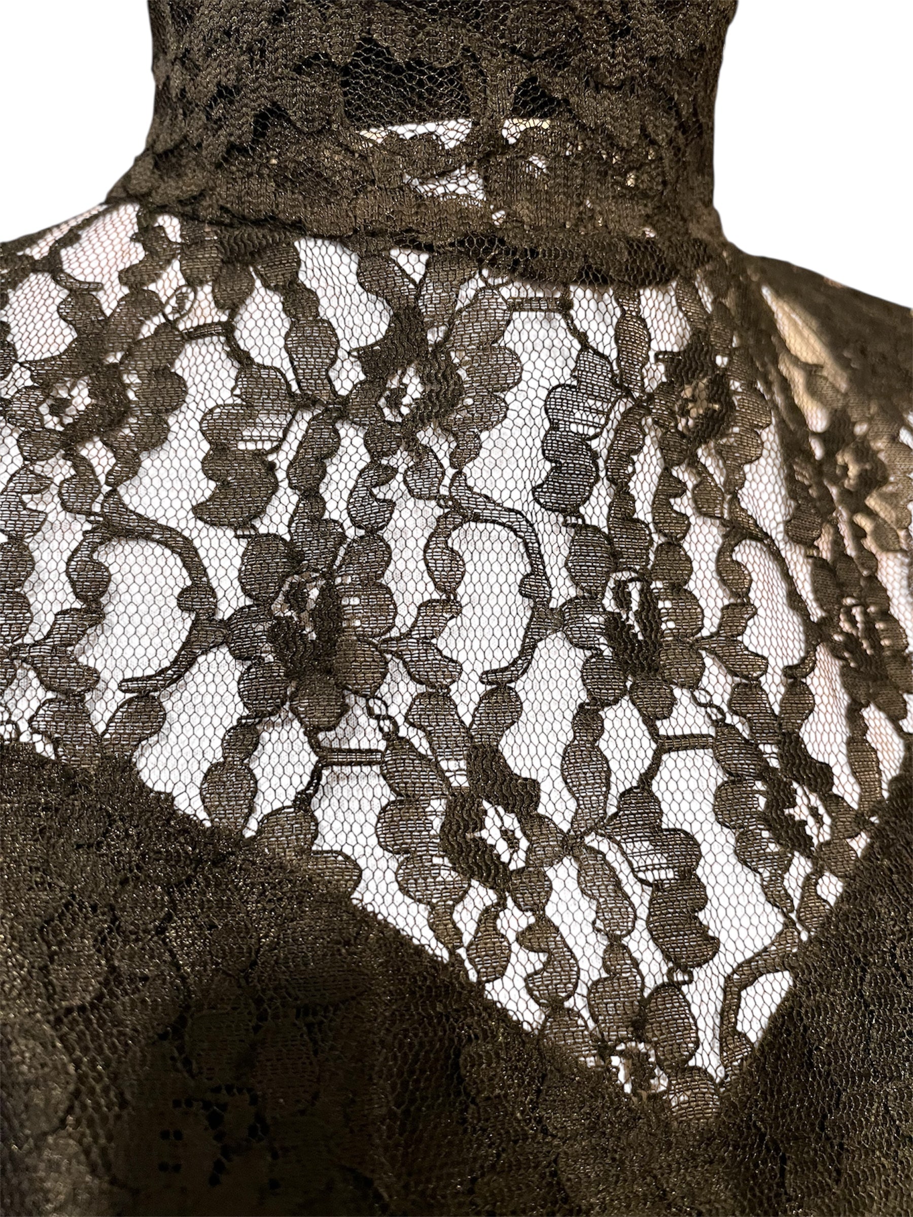 True Vintage 80s Spitzentop Schwarz Transparent | High Neck | Handmade Unikat Gr. 38