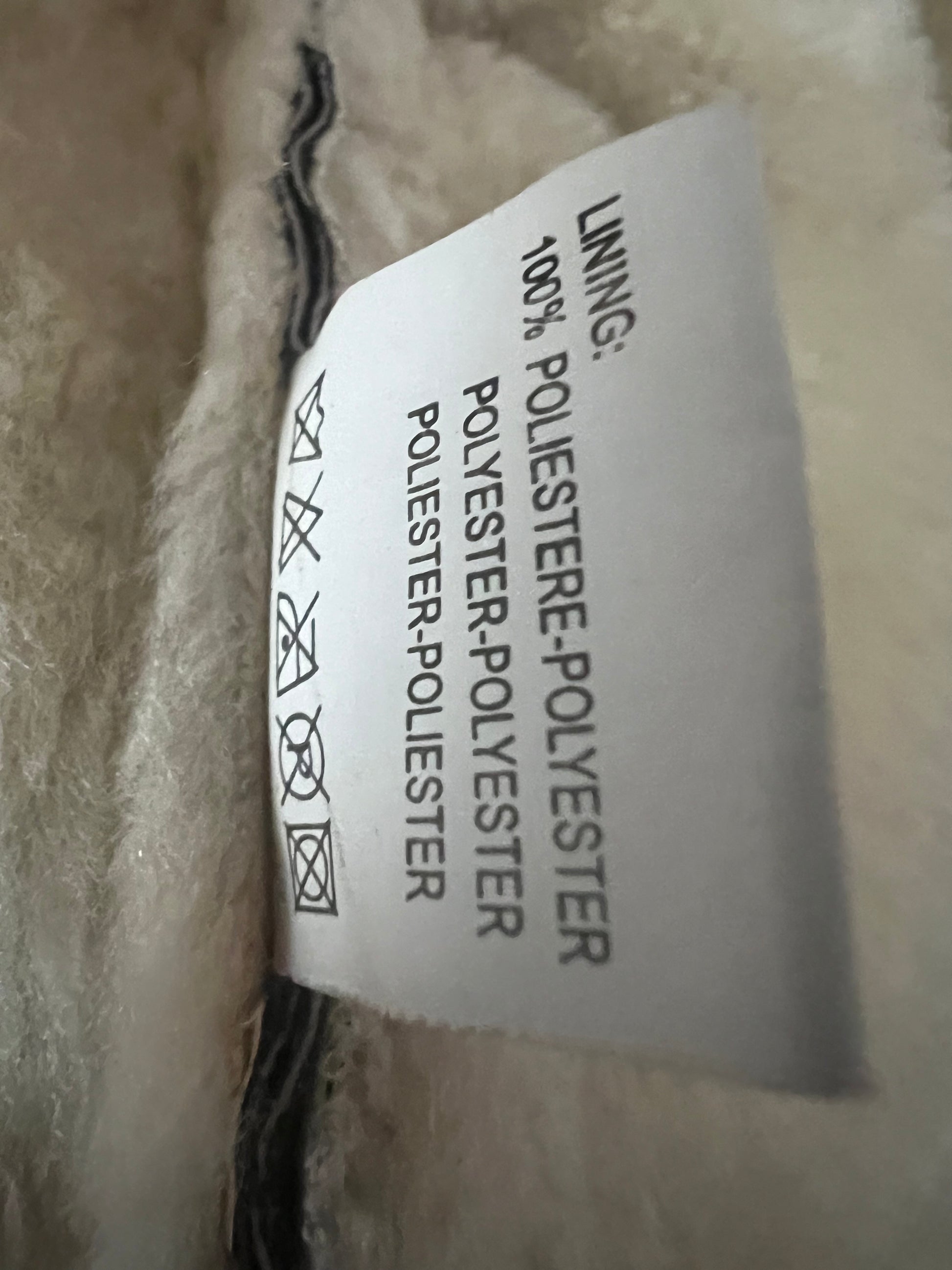 Innen komplett mit Teddyfell gefüttert, perfekt für kalte Tage. Vorne mit Knöpfen zu schließen, zwei Taschen.