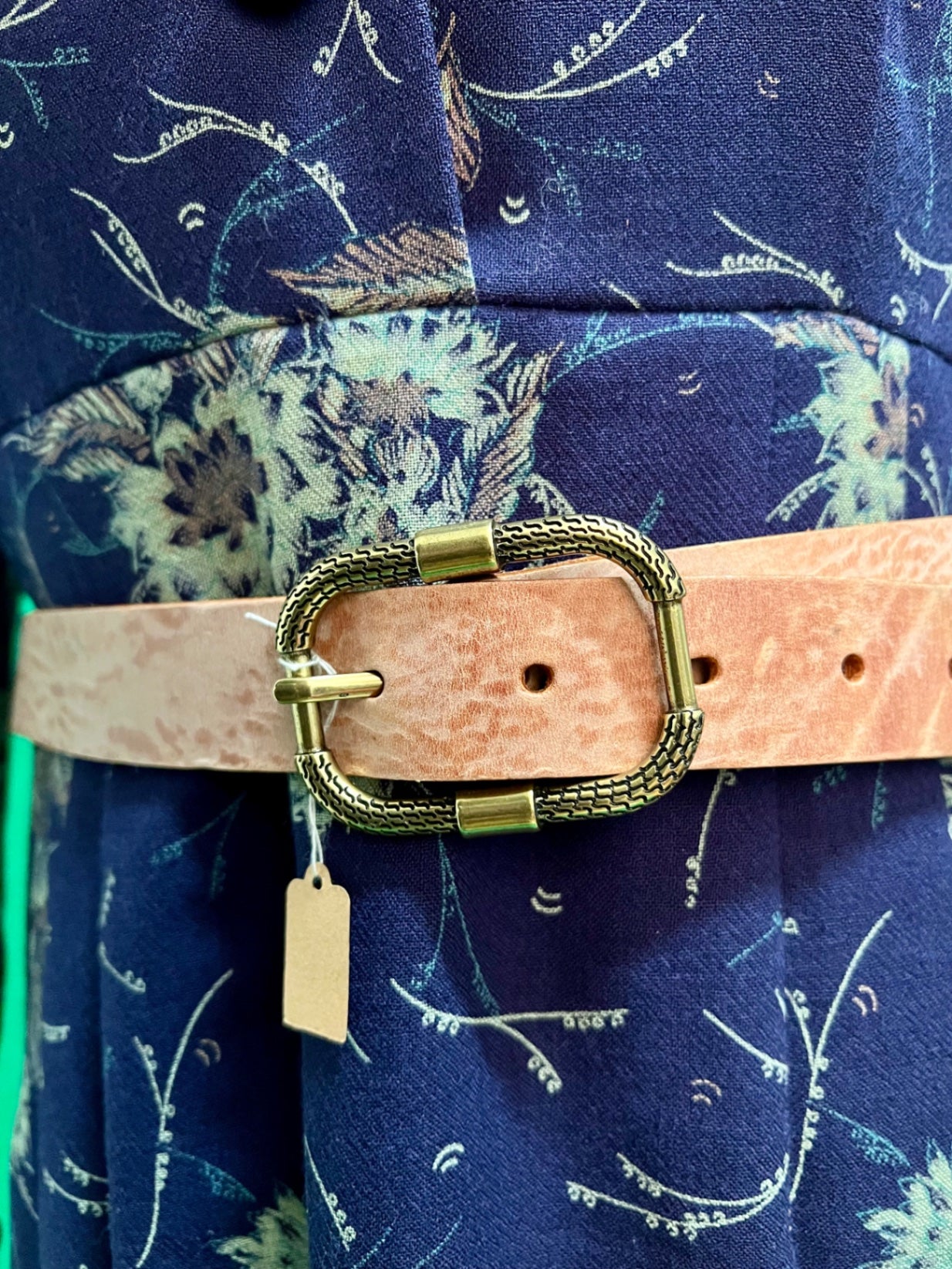 Leder Gürtel Ca. 85 cm Hellbraun mit Antikgold-Schnalle , Neu