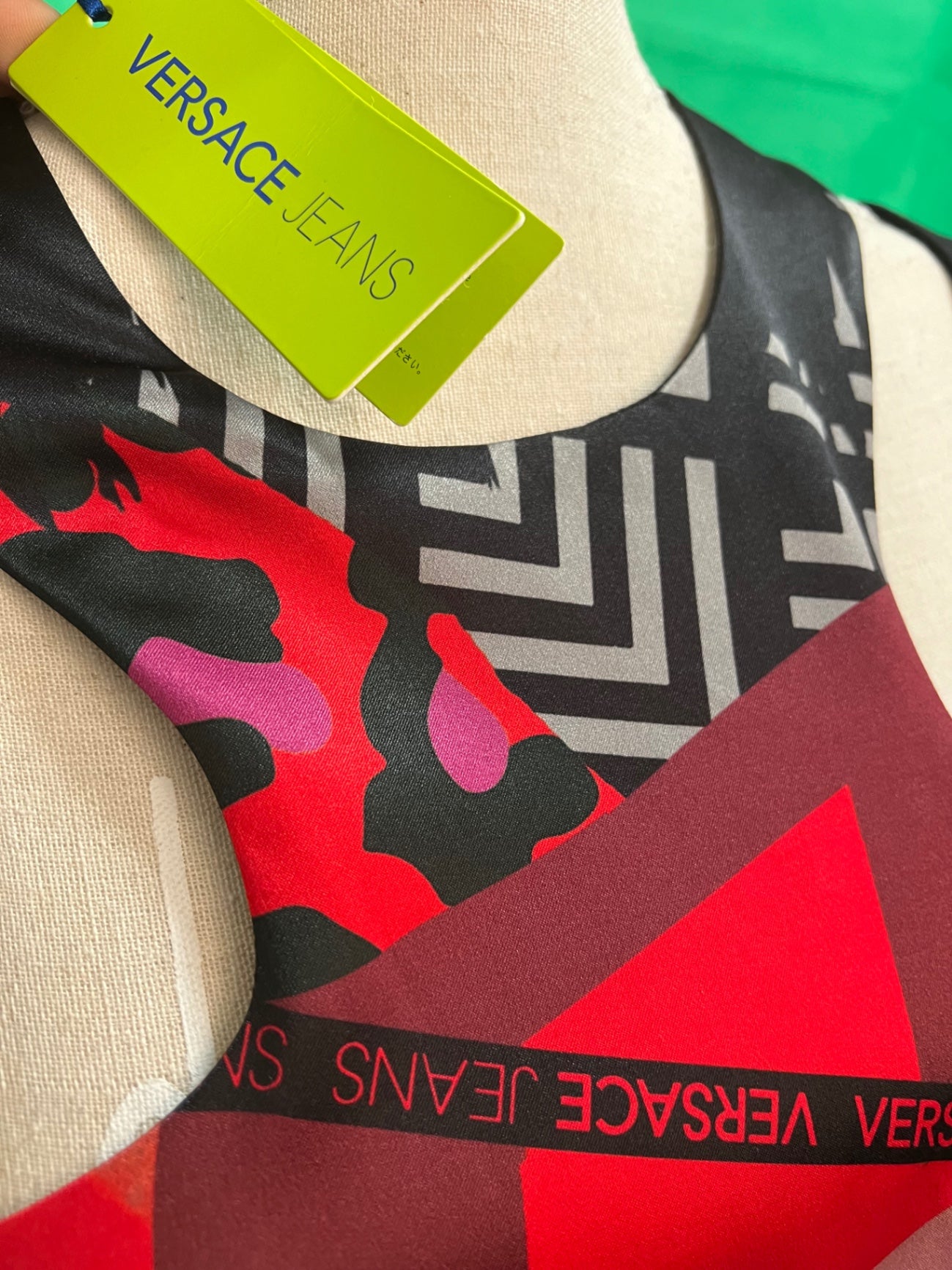 Versace Jeans Kleid 40 Schwarz Rot gemustert, NEU mit Etikett