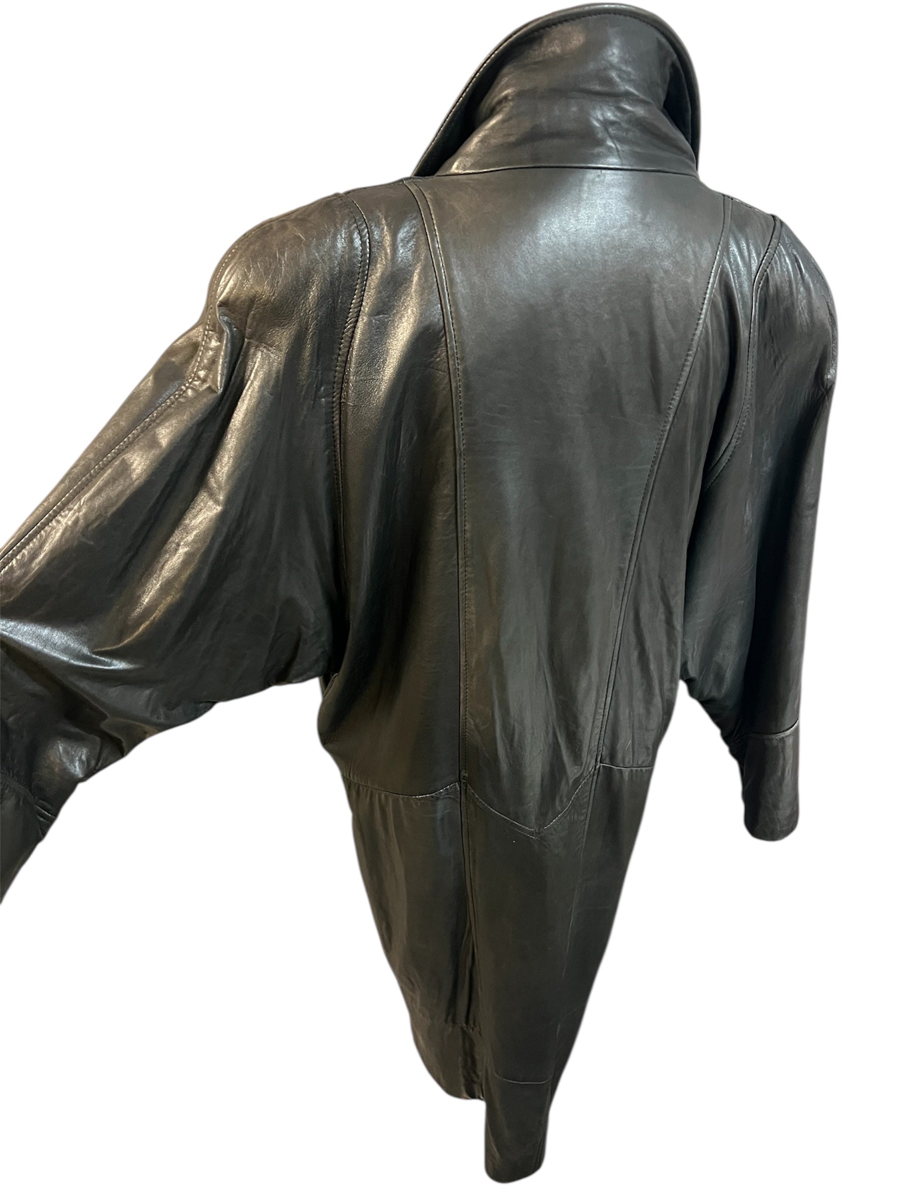 Vintage 80s Ledermantel Gr. L Schwarz • Echtleder Nappaleder • Oversize Long Coat • Schulterbetont