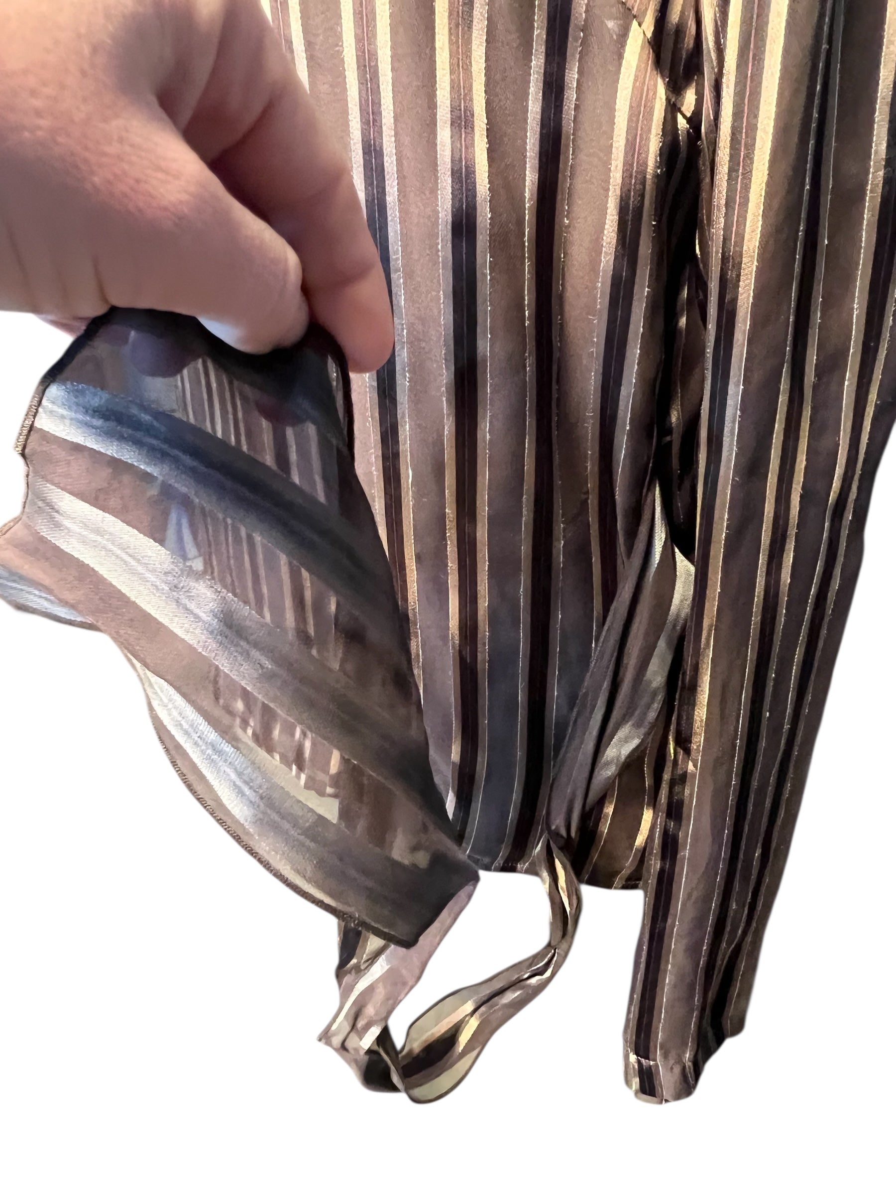 Vintage Blunauta Bluse Seide & Viskose – Ital. 46 (DE 38/40) – Braun Gold Gestreift – Made in Italy
