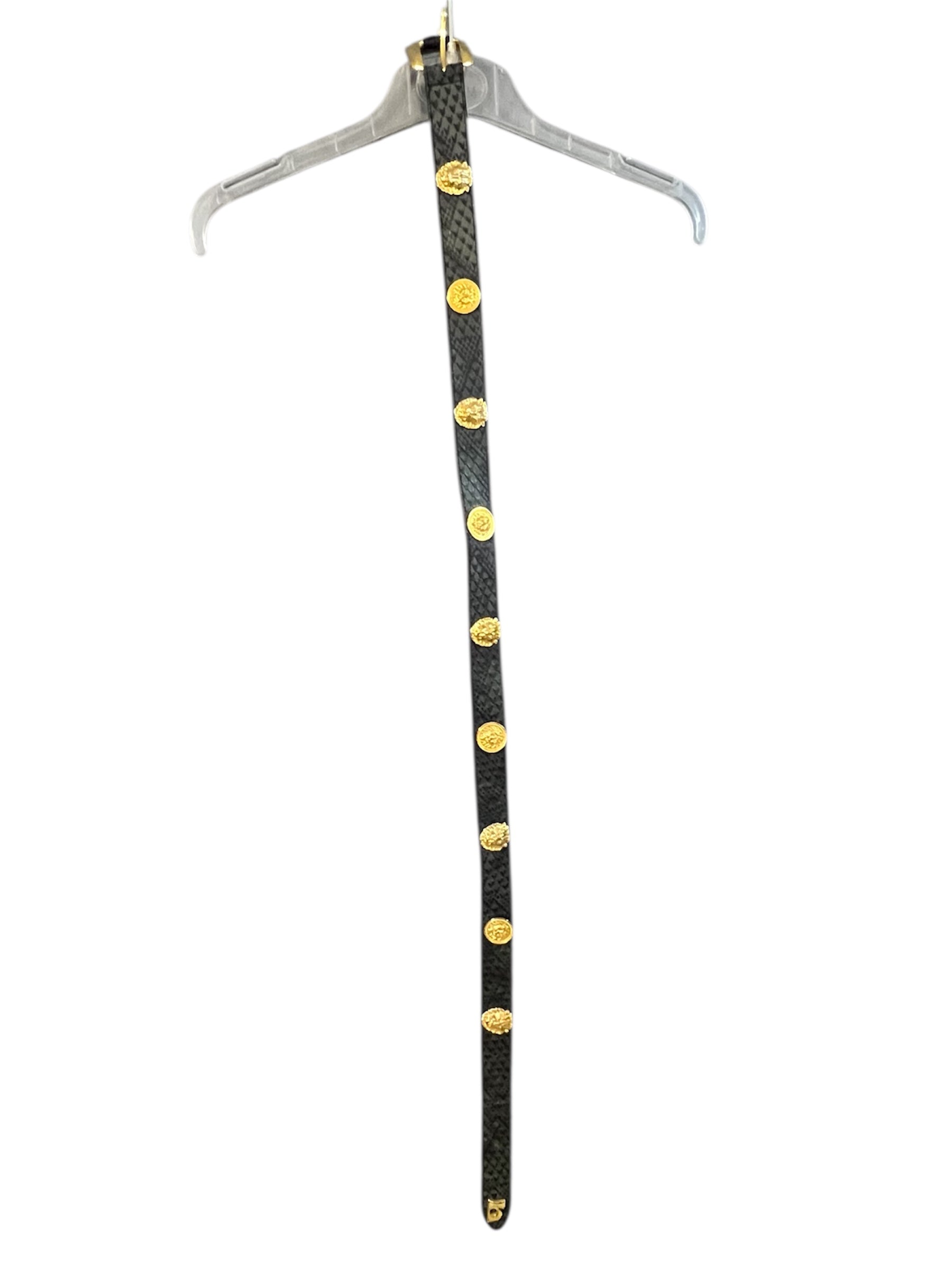 Vintage Gürtel schwarz | goldene Löwen-Metallschnalle | edles „n“-Detail | Statement-Piece | 80s/90s