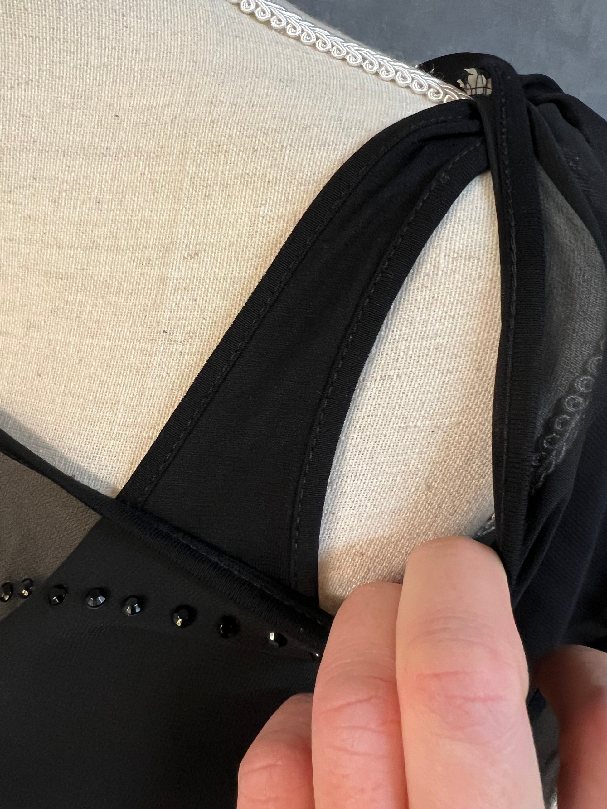 - Oberteil: doppellagiger Top-Bereich, darüber transparenter Stoff mit transparente Ärmeln