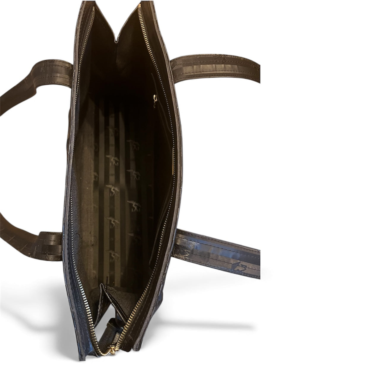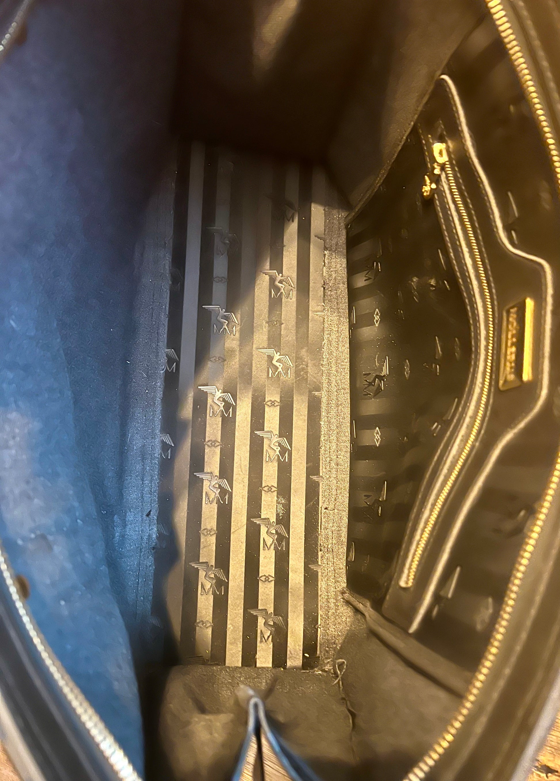 Innen befindet sich eine Reißverschluss-Innentasche, die komplette Tasche lässt sich ebenfalls sicher mit einem hochwertigen, intakten Zipper schließen.