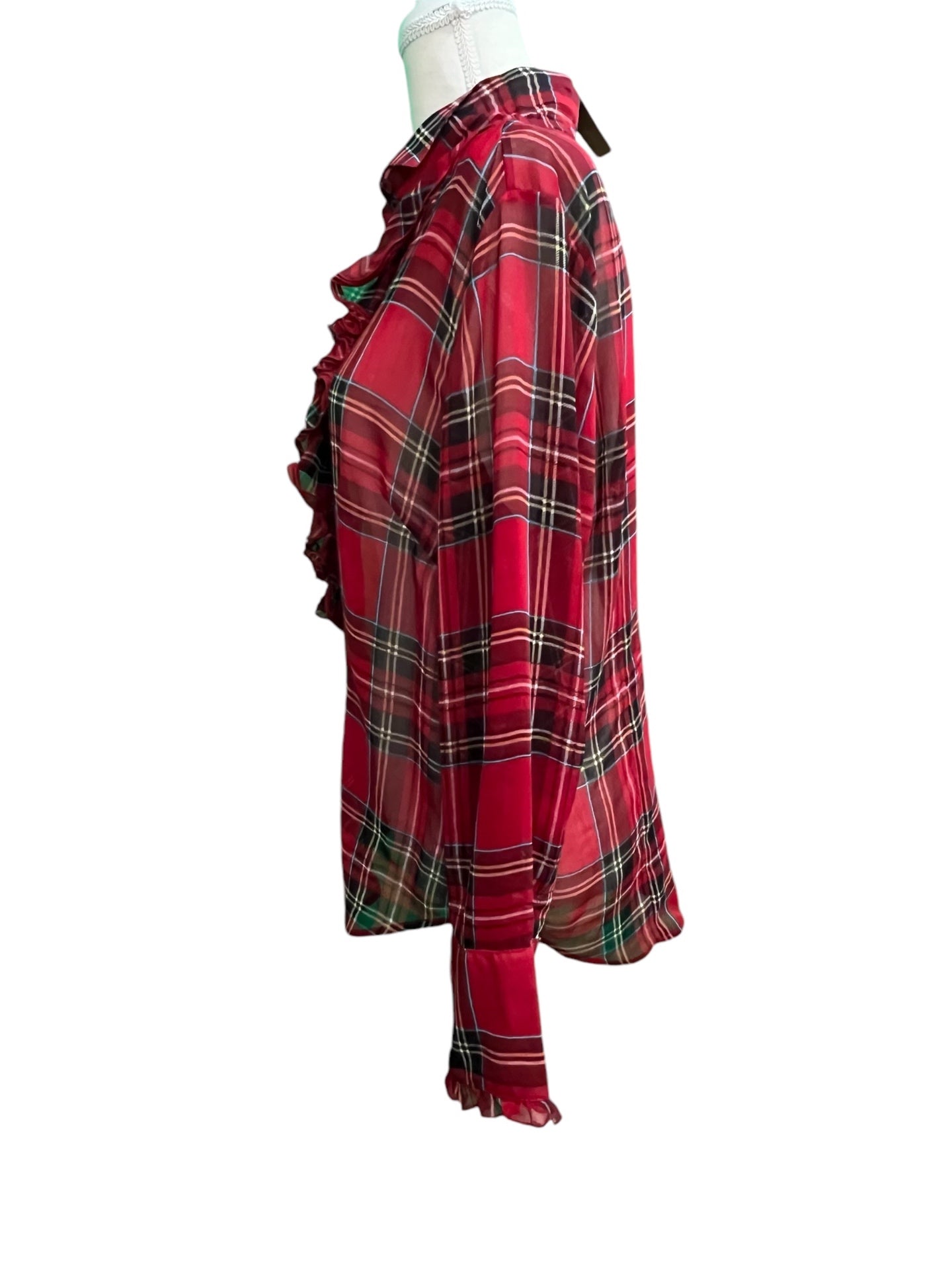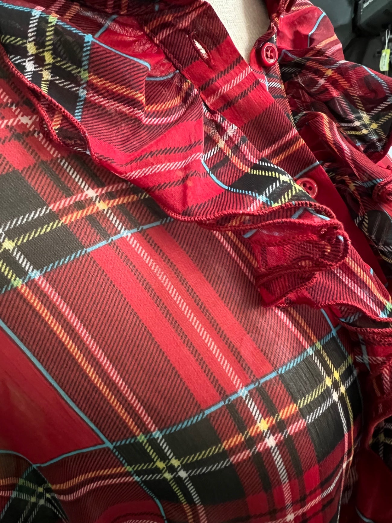 Vintage S. Milton Bluse 40 ( I44) Rot kariert transparent mit Rüschen