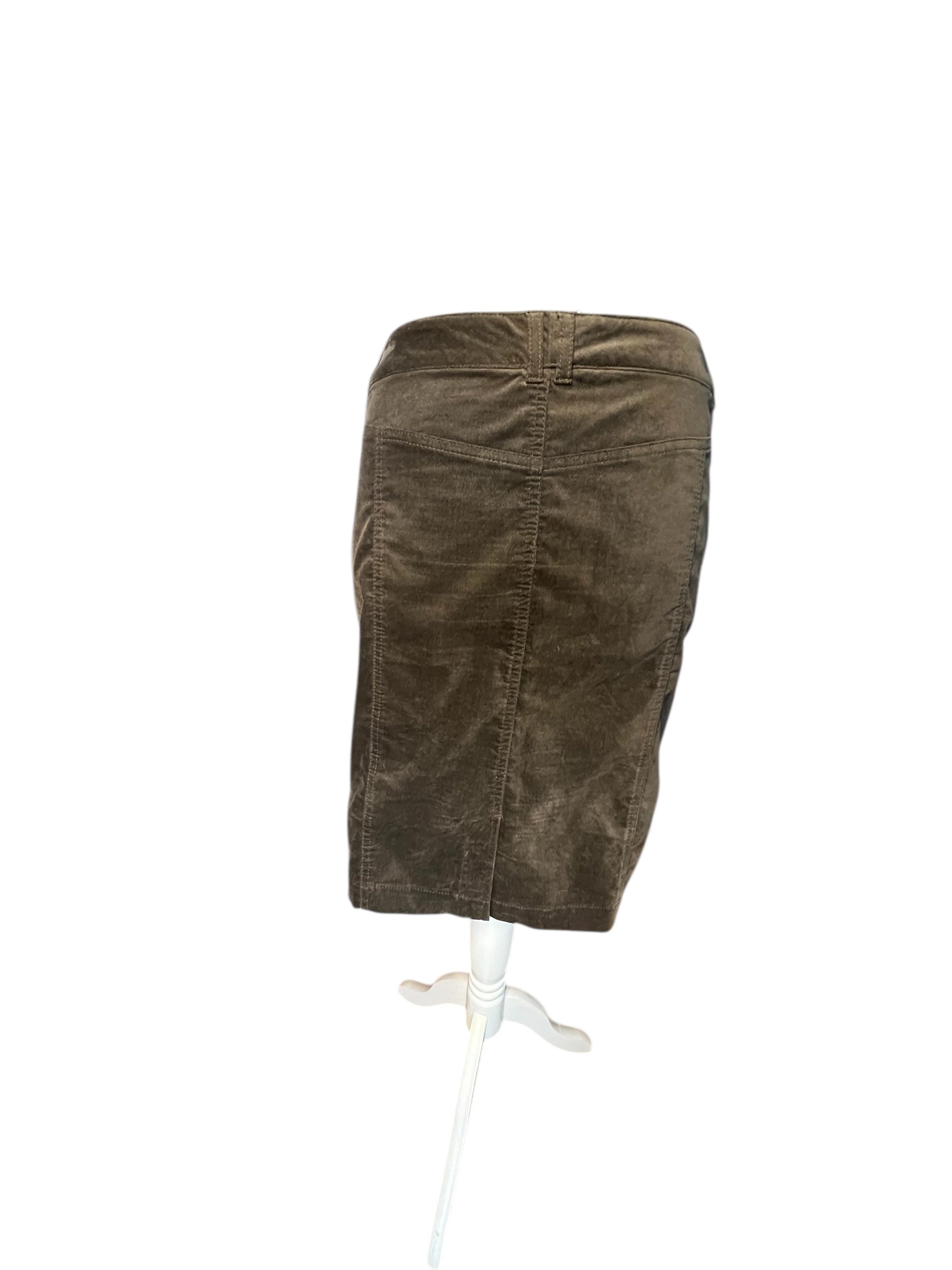 Vintage Samt Midi Rock Hirsch Gr. 38 | Braun Grau | Baumwoll Samt | 80s 90s